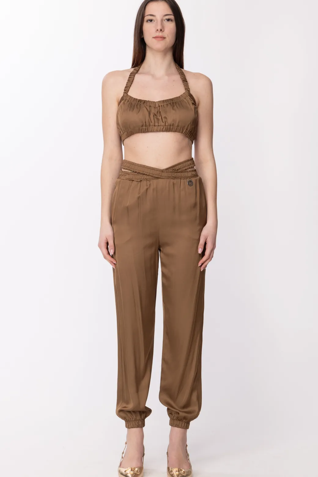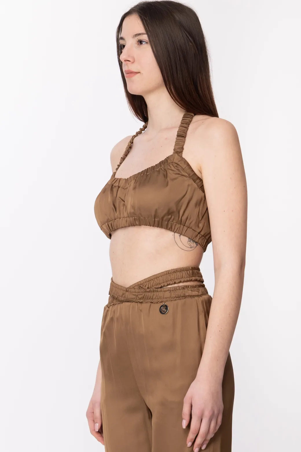 Gaëlle Paris Crop Top con ArricciatureMARRONE BISCOTTO