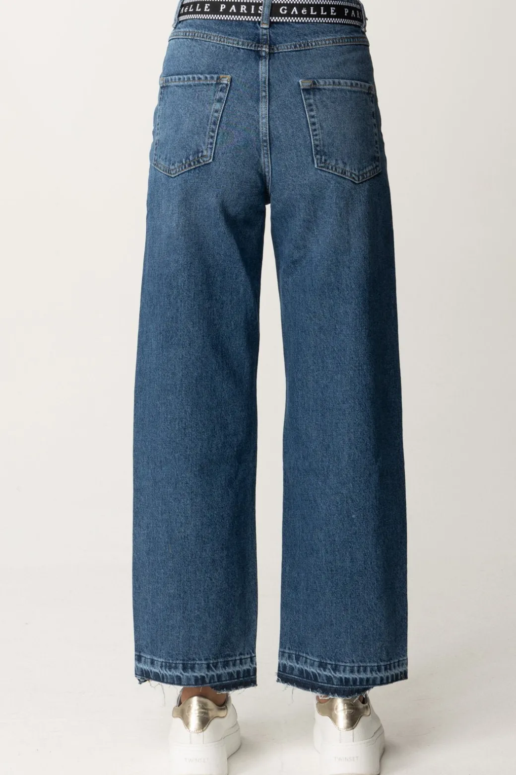 Jeans Gaelle Paris a gamba dritta impreziositi in vita dalla cintura logata a contrasto di colore e fondo gamba leggermente sfrangiato, un must-have casual con un twist moderno. Abbinali a una t-shirt basic e sneakers per un look rilassato, oppure a un top aderente e sandali per un outfit da sera casual.