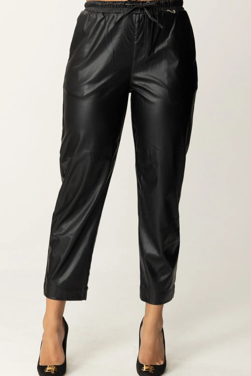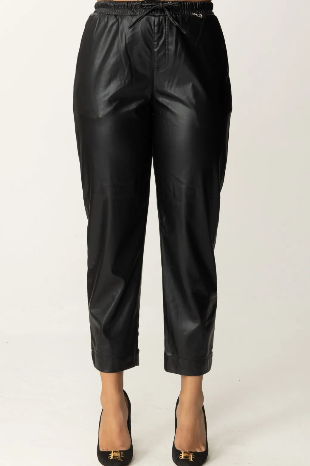 Questi pantaloni Gaelle Paris in ecopelle combinano comfort e tendenza, rendendoli ideali per outfit casual chic. La vita elasticizzata e la coulisse donano una vestibilità perfetta, mentre il tessuto effetto pelle aggiunge una nota audace. Abbinali a sneakers chunky e una felpa per un look street style.
