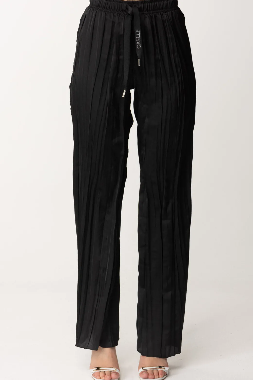 Pantaloni Gaëlle Paris dal design plissettato e morbido, ideale per essere indossati tutti i giorni per la perfetta combo di stile e comodità. La coulisse in vita è impreziosita da logo in strass per un tocco di luce irresistibile!