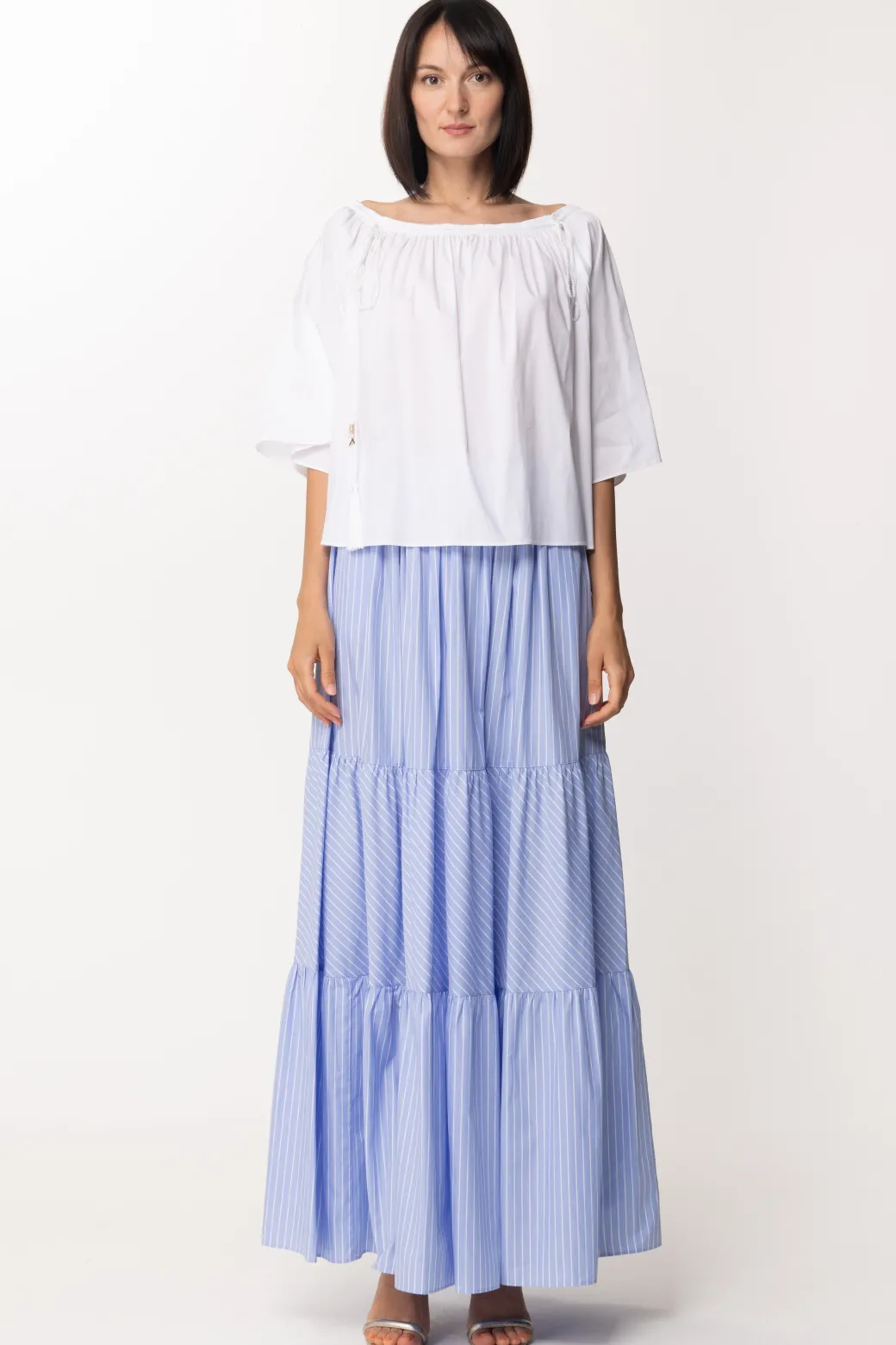 Un classico per l’estate: una bella gonna lunga Gina Gorgeous in cotone, realizzata a maxi balze che si susseguono fino al suolo e caratterizzata da fantasia a microrighe. Provala con crop top che lascino a vista il punto vita per un salto indietro nel tempo con un look ispirato alla moda di qualche anno fa!