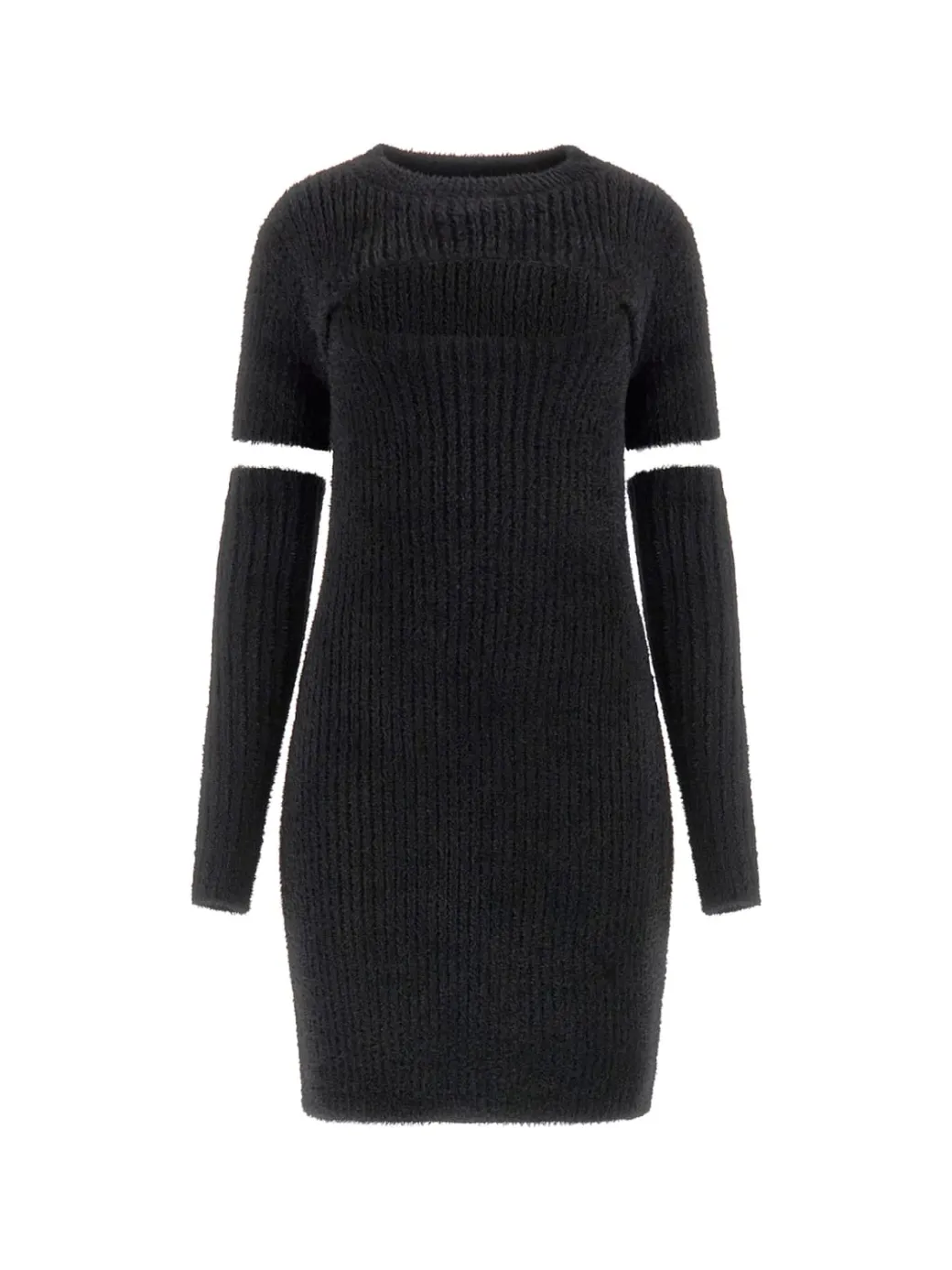 Quando il cozy incontra il sexy vengono fuori risultati intriganti come questa proposta: mini abito Guess in morbida maglia con cut-out al petto e maniche corte a cui si aggiungono dei manicotti a guanto. Perfettamente sagomato sulla silhouette, un outfit da rendere più casual con uno stivale flat, o ancora più sexy con un bel tacco che sia massimo slancio all’insieme.