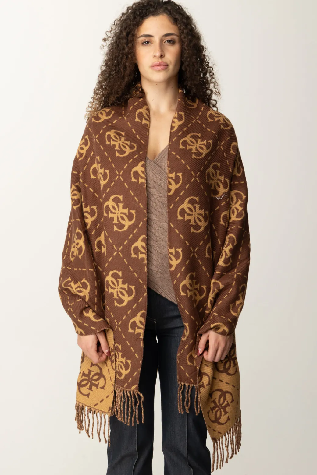 Decorata con l’inconfondibile logo su tutto il tessuto e impreziosita da frange decorative alle estremità, questa sciapra Guess aggiunge un tocco sofisticato e moderno ai tuoi look invernali. Ideale per completare outfit casual o formali con un dettaglio distintivo.