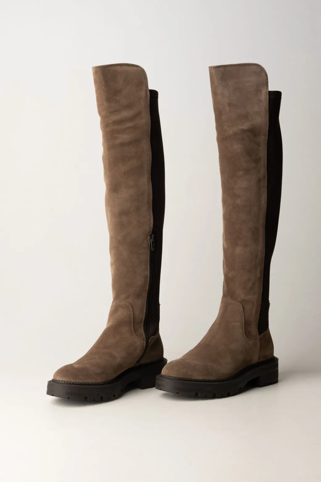 Pratici ed eleganti stivali Guess realizzati in pelle scamosciata con inserto elasticato sul retro e placchetta logo sul tallone, perfetti per completare outfit quotidiani con un tocco di sofisticatezza. Provali anche con mini dress in maglia e minigonne: saranno un modo cool e disimpegnato per completare i tuoi look.