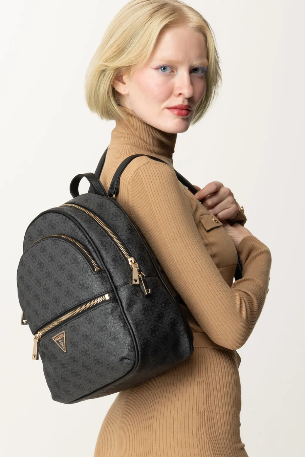 Affronta la giornata con stile indossando questo Zainetto Guess dal design audace, impreziosito da una stampa logo all-over che cattura lo sguardo. La fascia a contrasto di colore conferisce un tocco di vivacità, mentre il logo in metallo sul davanti aggiunge un’elegante nota di raffinatezza urbana.