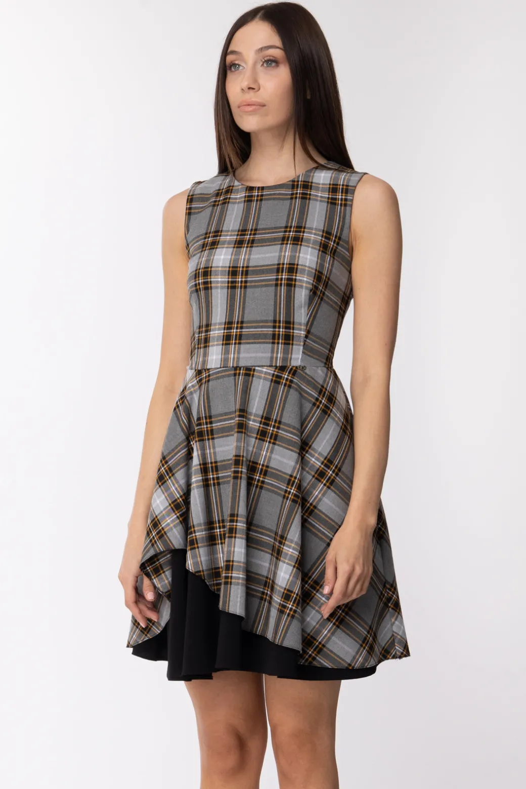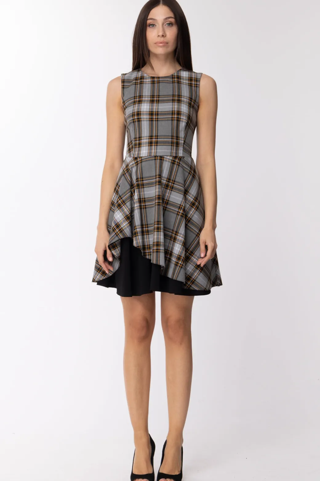 Imperial Imperial: Abito Mini Stampa Tartar Senza ManicheGRIGIO / GIALLO