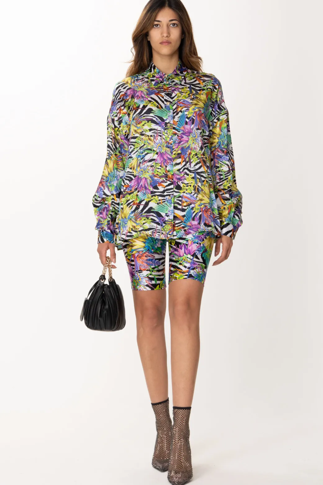 Leggins Just Cavalli dalla fantasia più grintosa che mai! Fit extra aderente e dal finish lucido con stampa animalier che contrasta una stampa floreale dai colori brillanti. A completare il tutto c’è la fascia in vita con logo lettering.