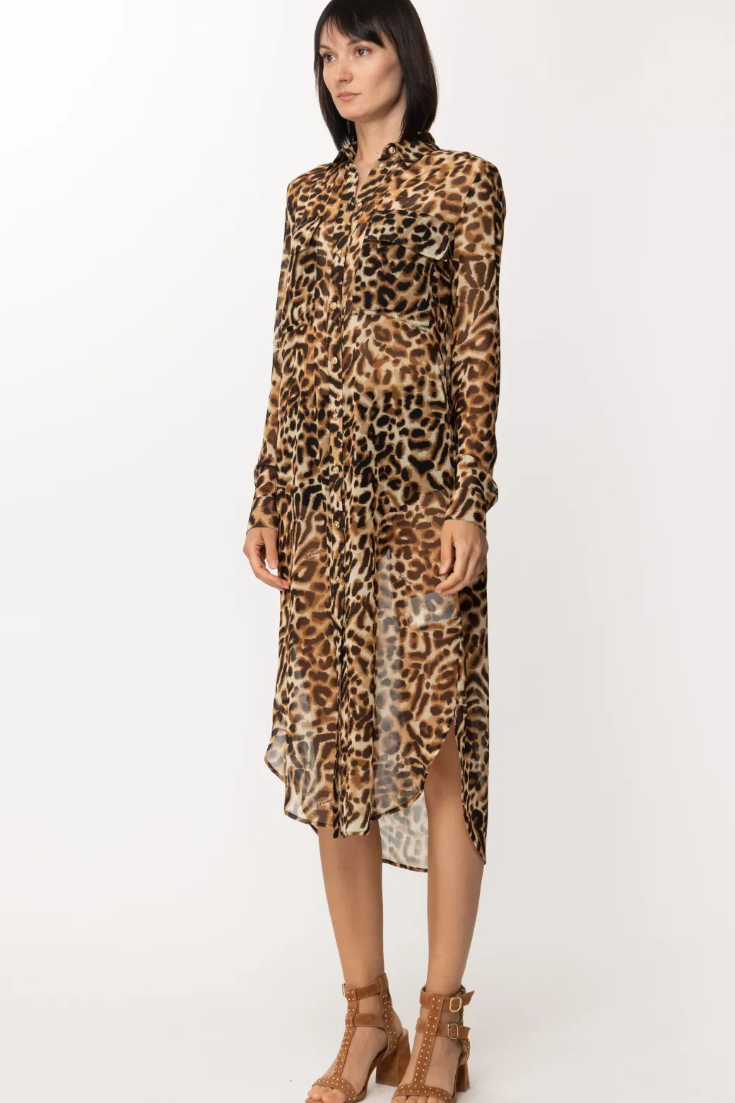 Maxi abito Just Cavalli dal design a camicia, interamente caratterizzato da una stampa leopardata all-over, due tasche con patta sul petto e tessuto leggero. Il tocco di grinta per il tuo look!