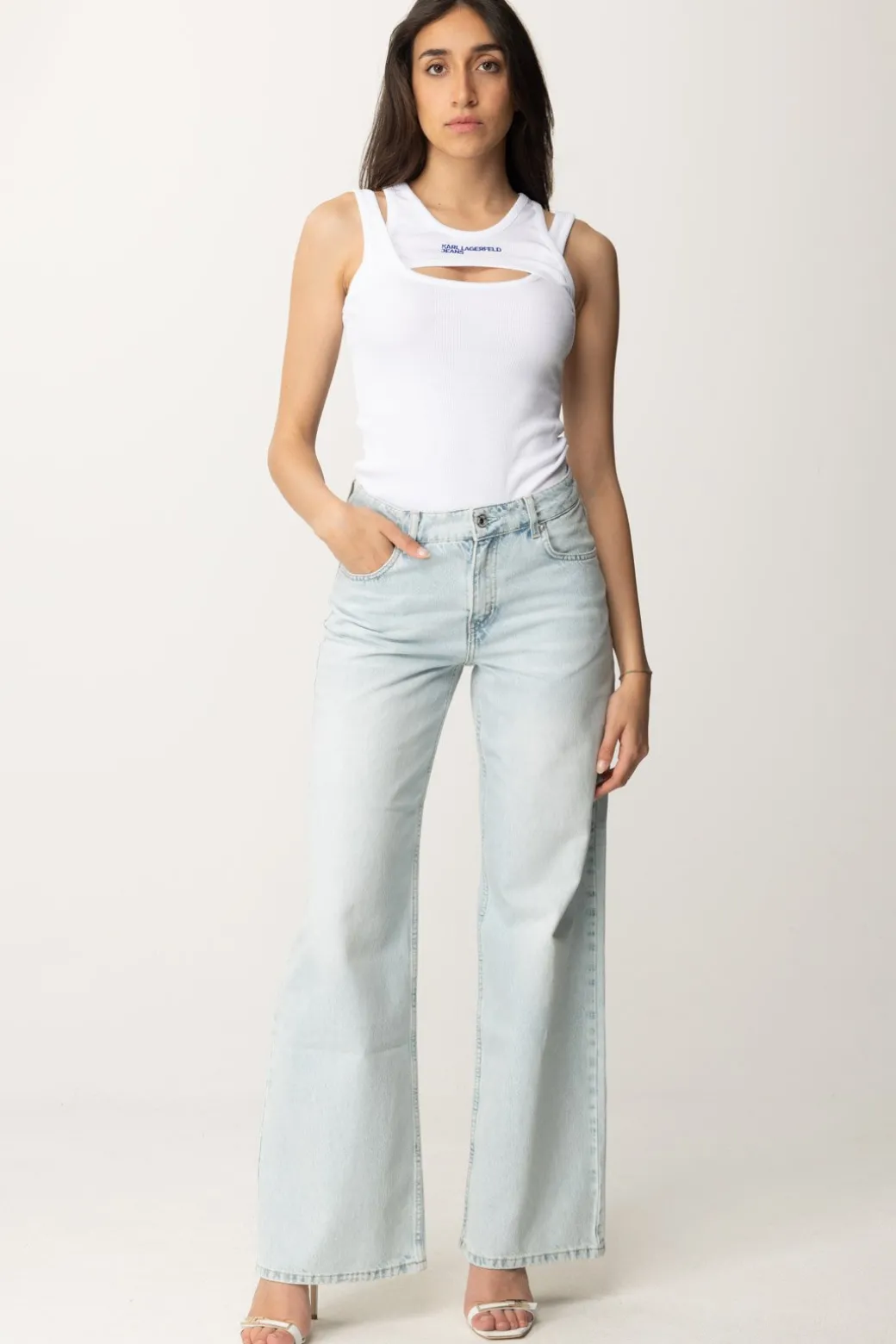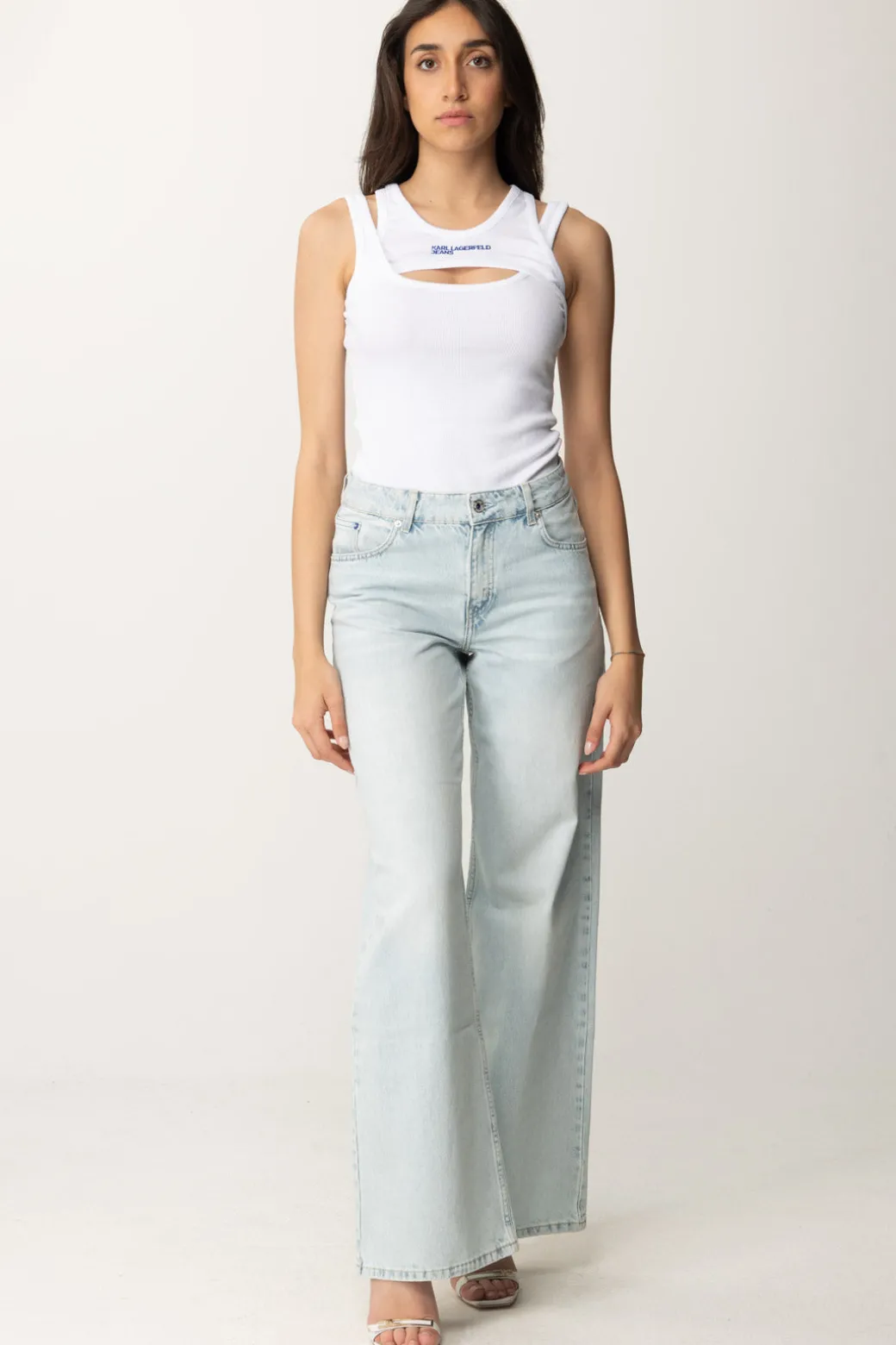 Canotta Karl Lagerfeld realizzata a costine, con bretelle sovrapposte e logo frontale in lettering ricamato. Semplice e sportiva, ideale come sotto giacca o sopra un paio di denim.