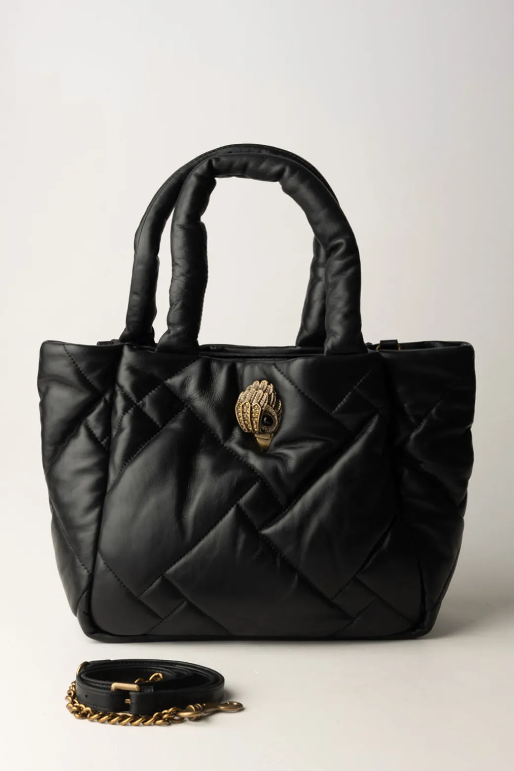 Una borsa shopper Kurt Geiger spaziosa e soffice, con una silhouette moderna e trapuntata. Il dettaglio logo frontale aggiunge un accento di eleganza e luce. Perfetta per outfit casual-chic, indossala con un cappotto oversize e stivali chunky per un look invernale sofisticato.