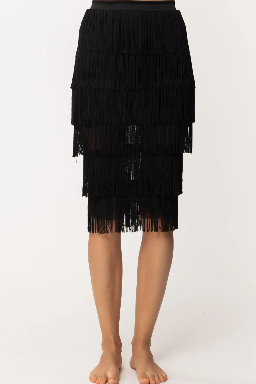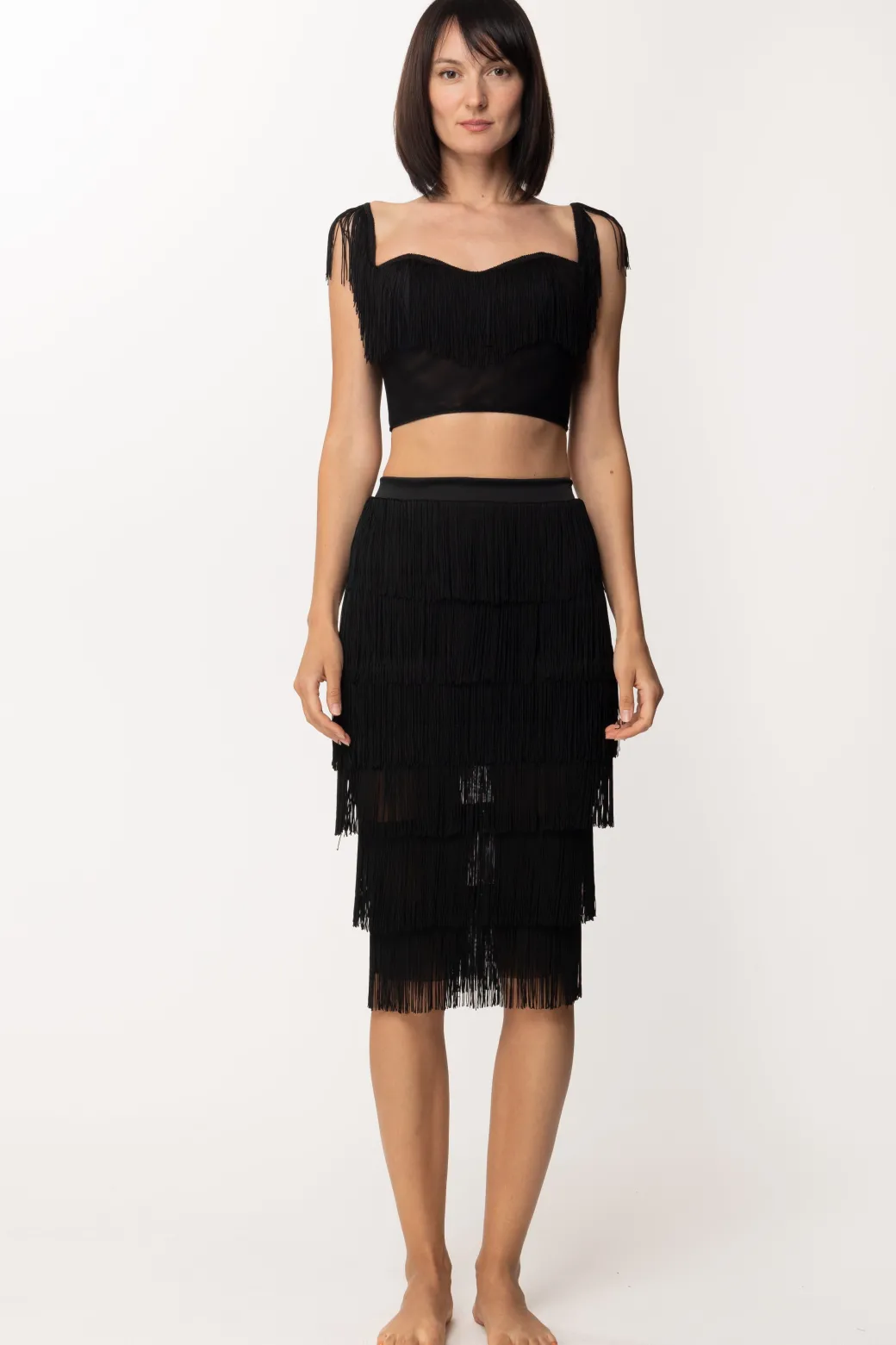 Each Malì Beachwear costume is designed to enhance the femininity of the wearer and to give a unique and special style even on beach days in the sun! This stretch skirt has a midi high-waisted design, with an elastic waist and totally embellished with a cascade of fringes. Match it with the matching top for a perfect total look!
