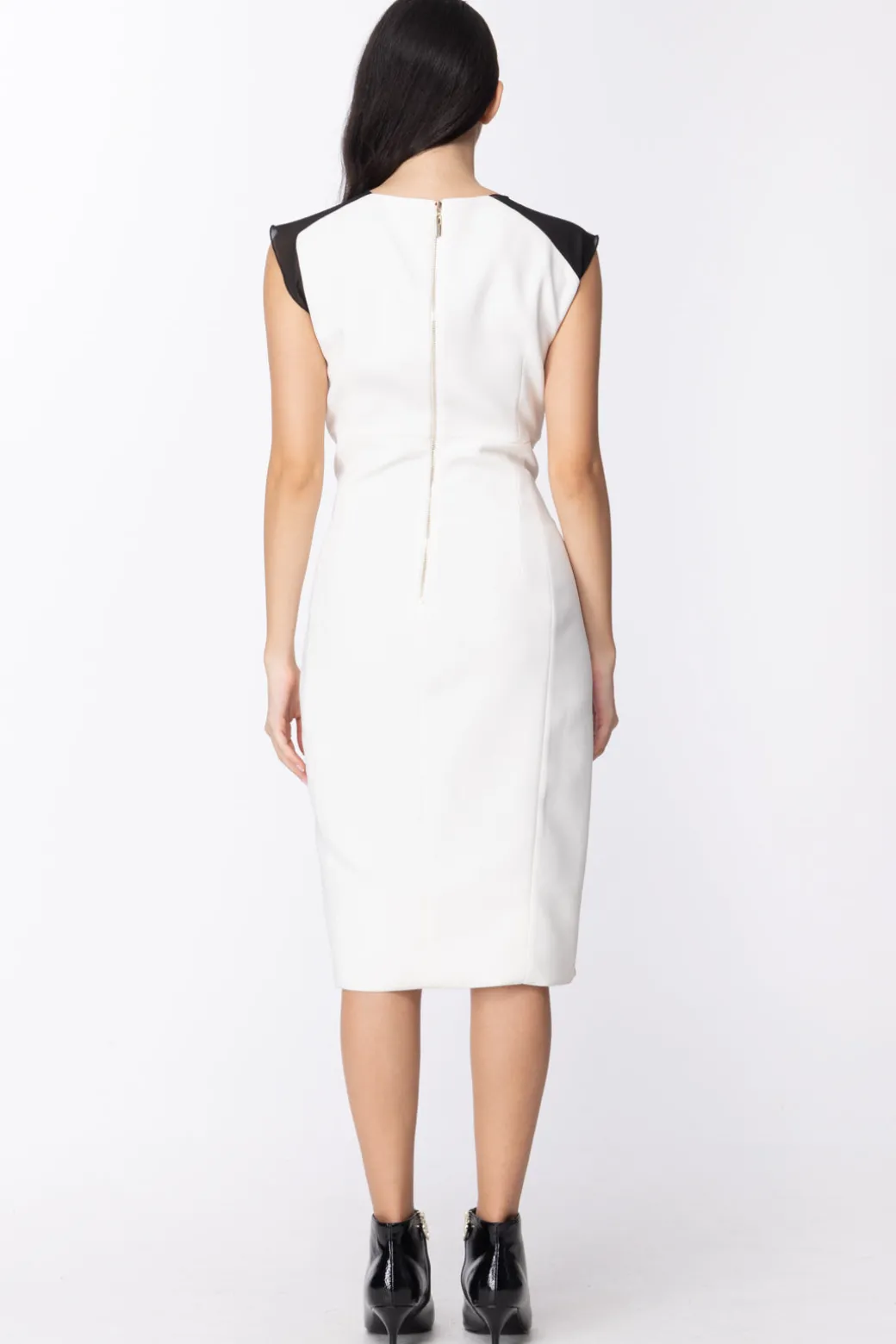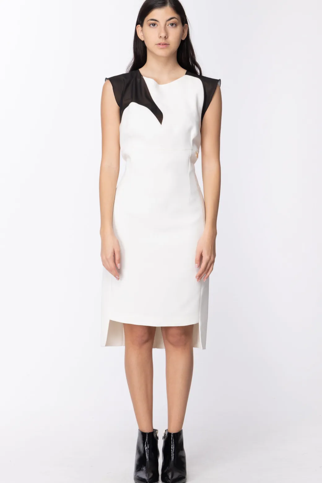 Mangano Abito Elegante Longuette con TrasparenzeOFFWHITE/NERO