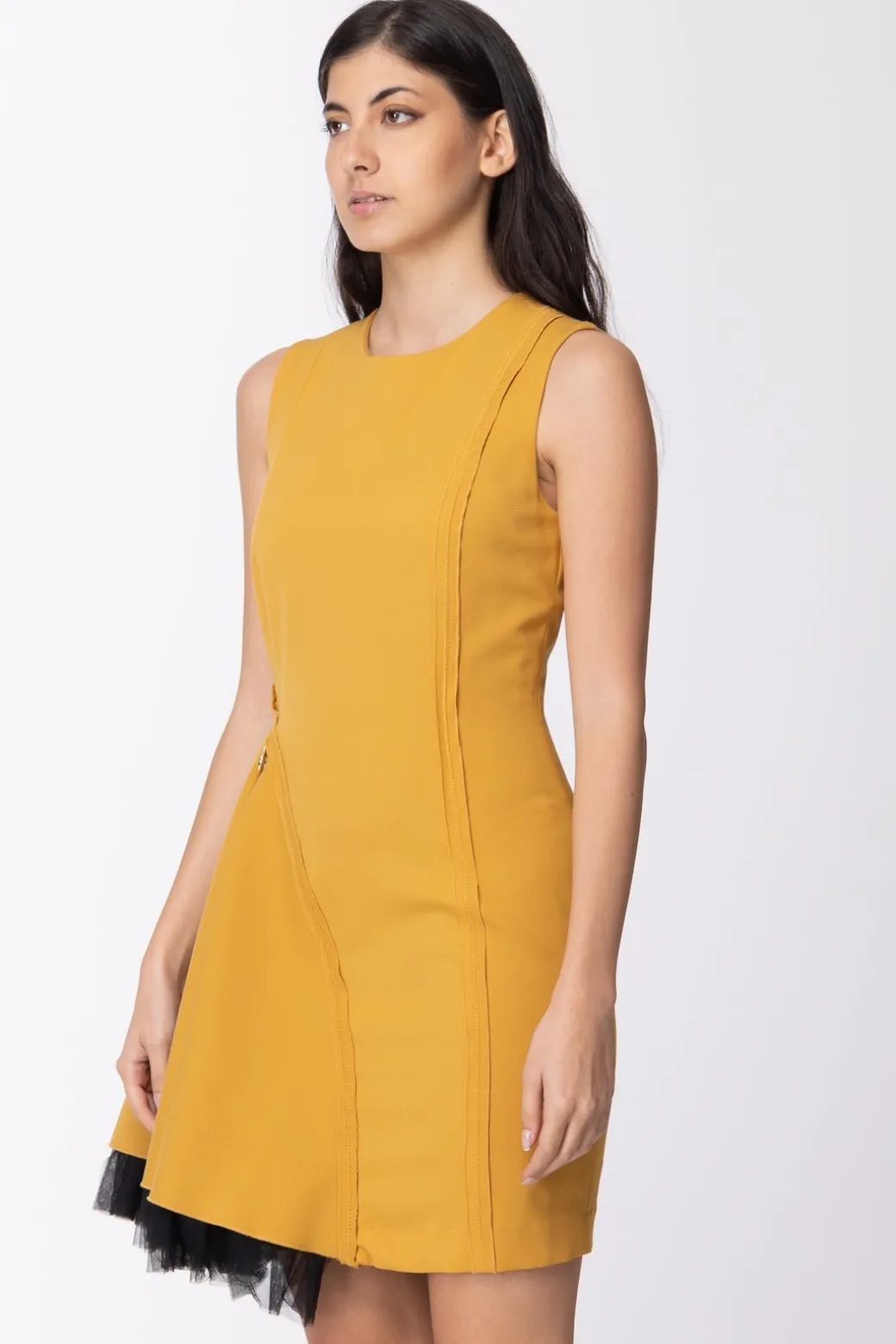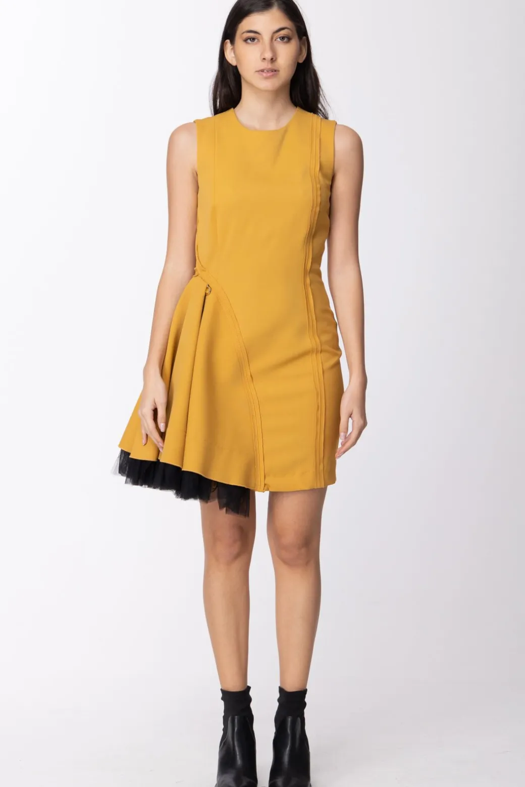 Be the first to review “Mangano Mangano: Abito Asimmetrico Smanicato con Trama Diagonale Impunture e Cuciture EsterneSENAPE” Annulla risposta