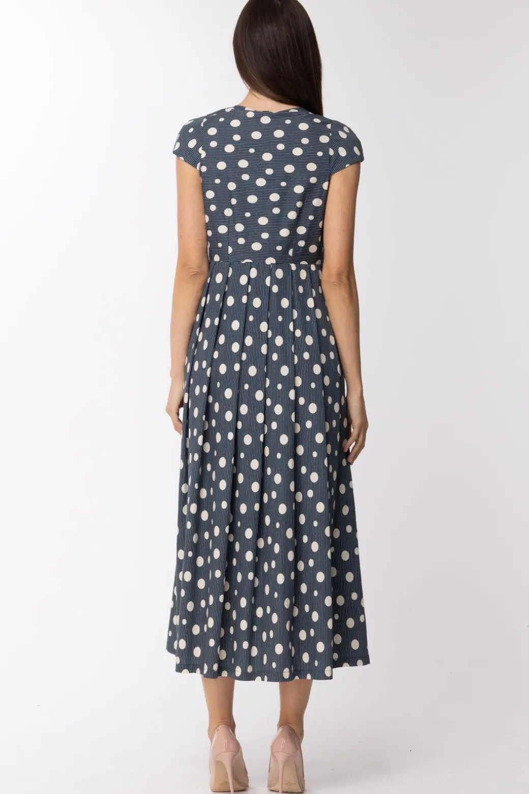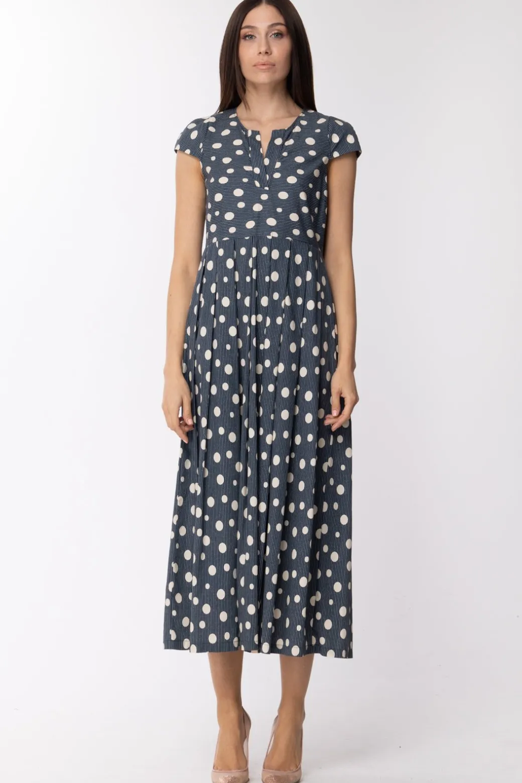 Manila Grace Abito Da Giorno Stampa Pois Maniche Corte Vestibilita AmpiaBLU NAVY