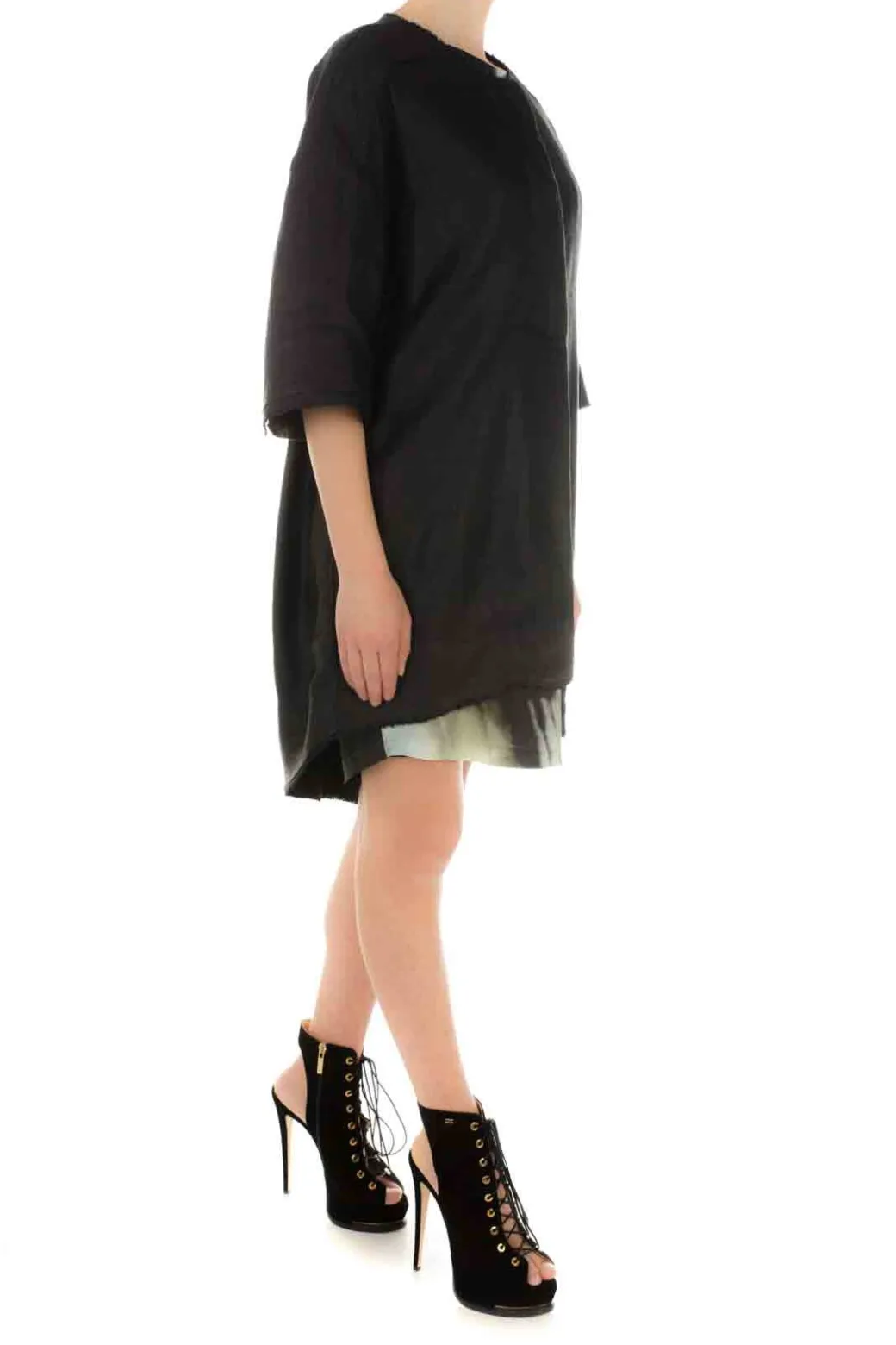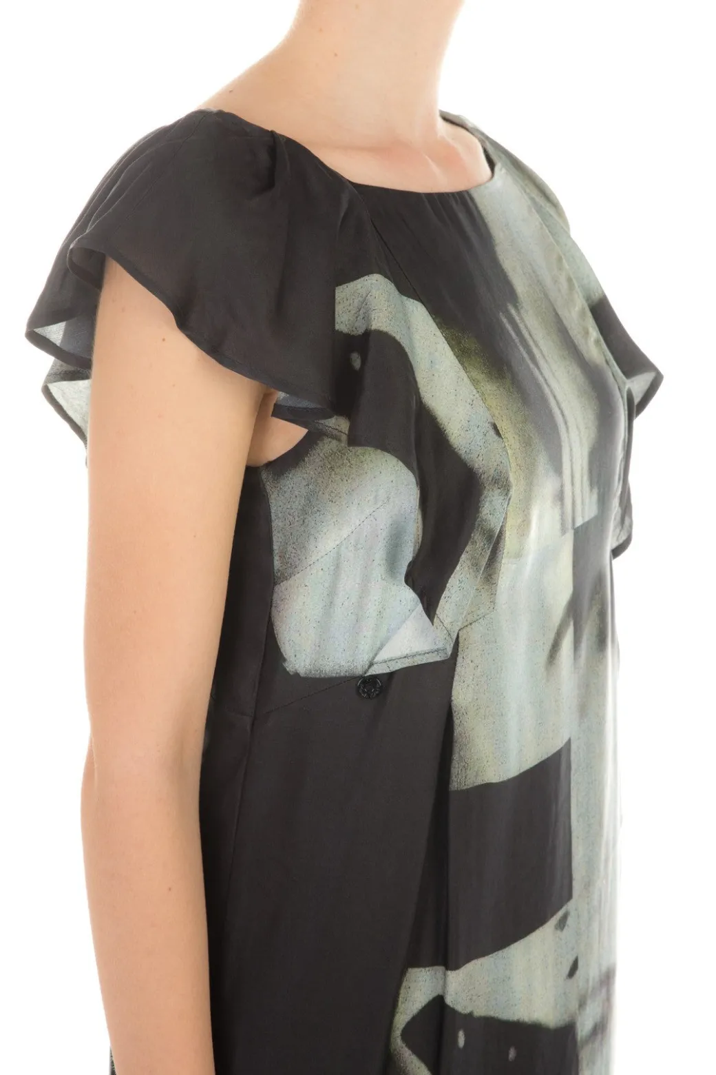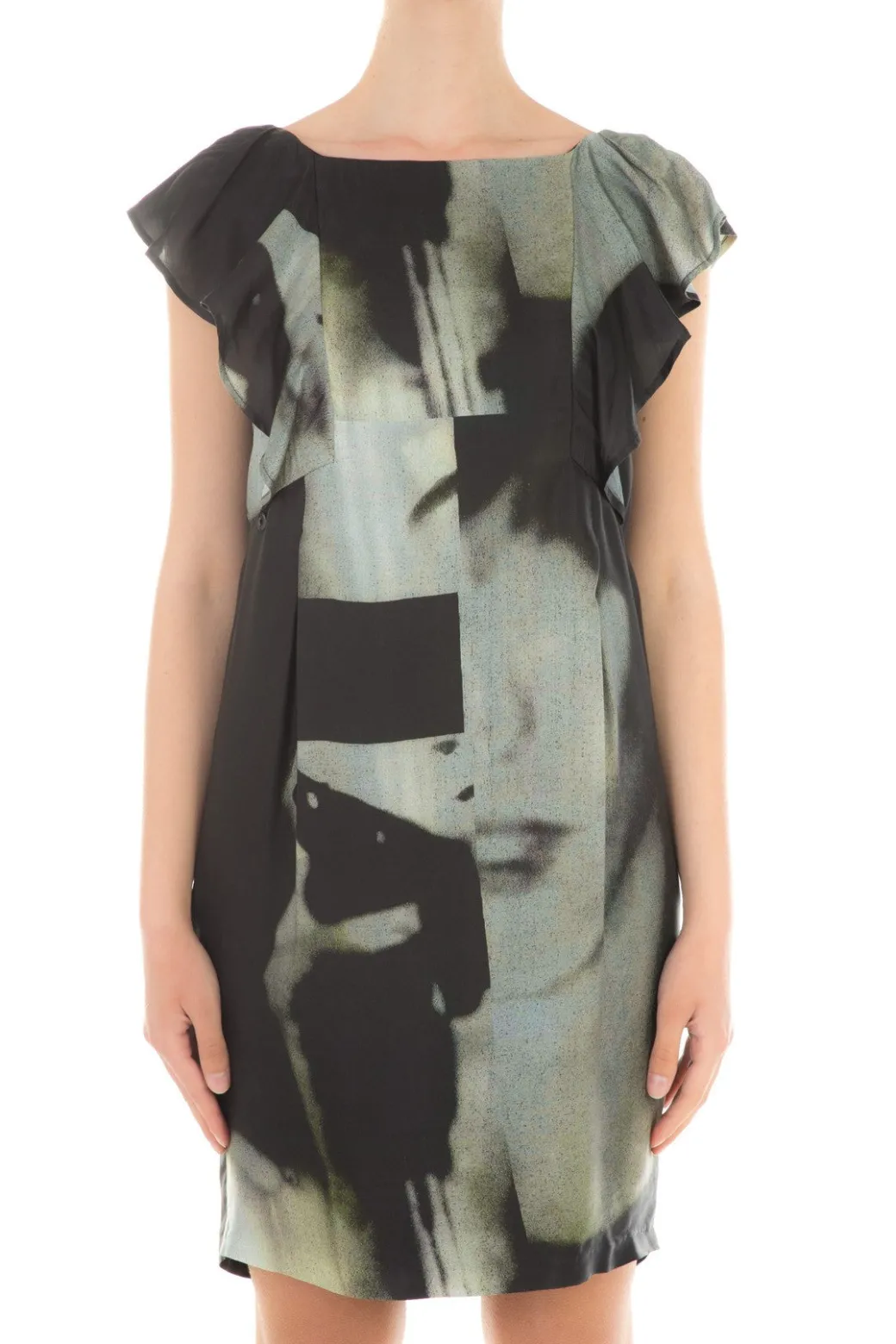 Un design particolare per questo abito Manila Grace: linea scivolata, con maniche ad aletta, ampio scollo a barca sul davanti e a V sul retro. A renderlo unico una stampa fotografica black and white scomposta, che crea dinamicità e conferisce originalità al capo.