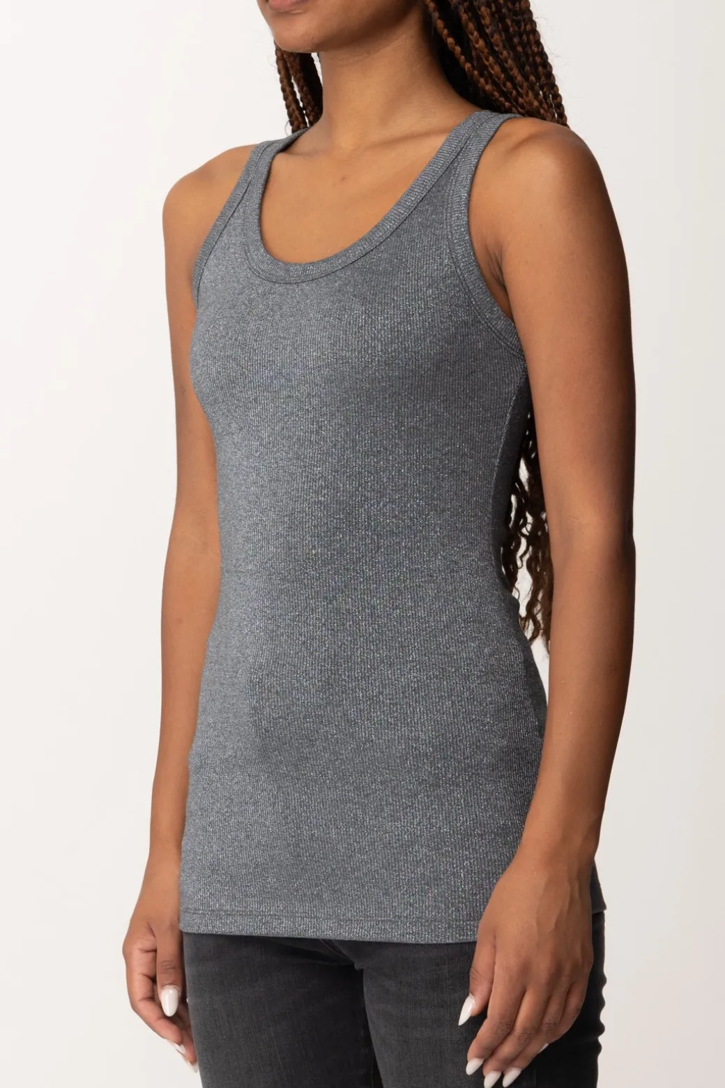 Un top flashy per i tuoi outfit più diversi: allure sportiva ma tessuto importante per questo canotta Manila Grace in lurex a costine, che si presta ad essere un sottogiacca casual, ma anche un top facile da abbinare a cardigan o indossare senz’altro aggiungere, in abbinamento a denim, gonne a vita alta e molto altro ancora. Scegli la tua nuances e fallo subito tuo!