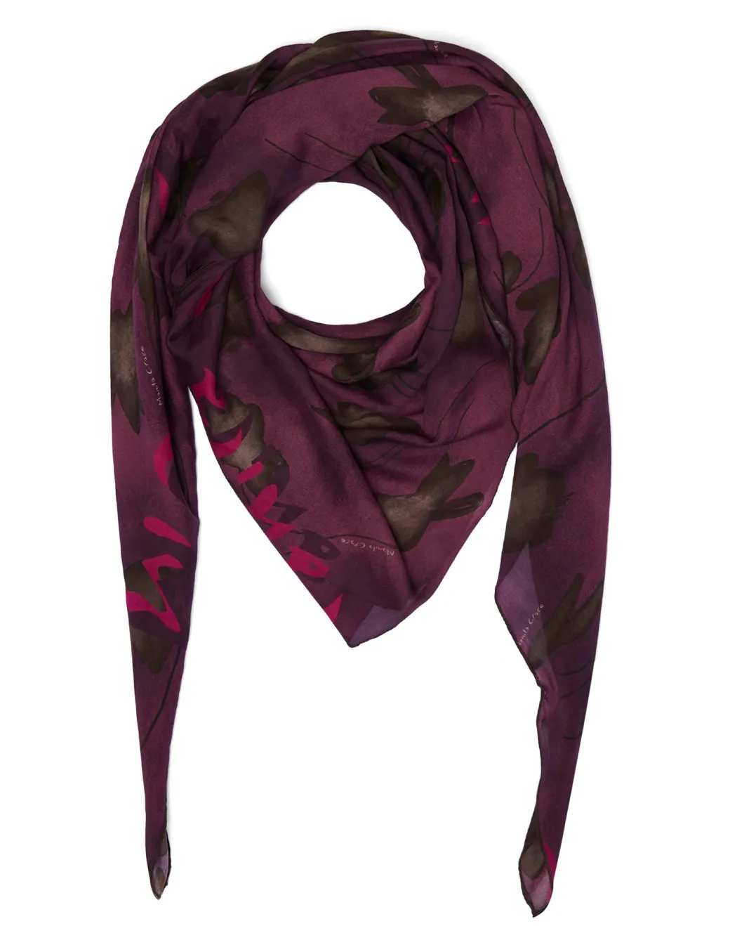 Gli accessori sono sempre preziosi alleati del tuo look: immancabili come in ogni stagione, eccoti allora uno dei foulard Manila Grace, formato trapezio, dalla stampa distintiva e realizzato in delicato voile di seta e cotone.