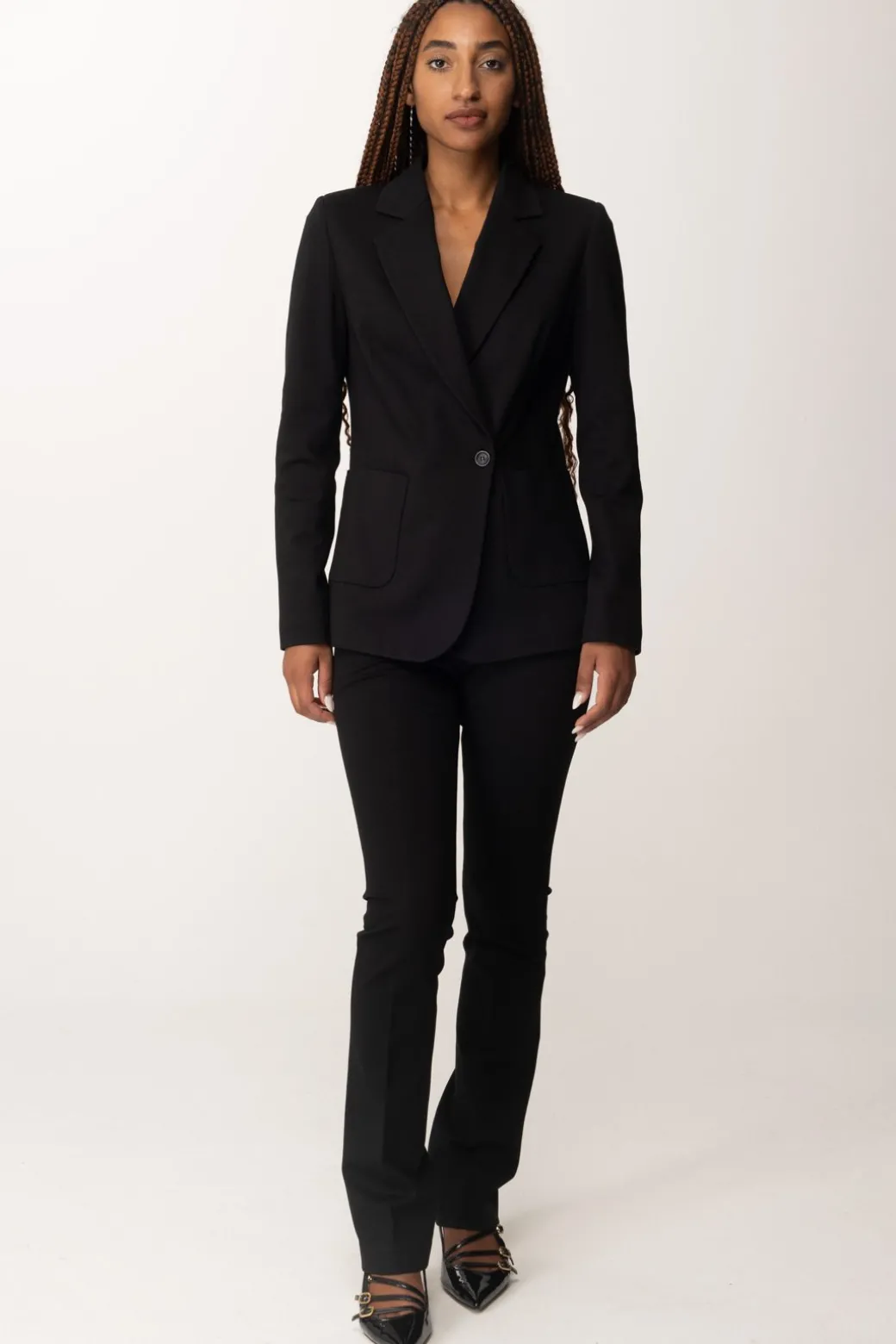 Una nota di originalità: l’abbottonatura monopetto di questa giacca Manila Grace si trova decentrata, spostata verso il fianco, creando un effetto avvolgente sul busto che la differenzia dagli altri blazer del tuo guardaroba. Tasche laterali, maniche lunghe e fit super aderente, un capo femminile e versatile al servizio dei tuoi look.