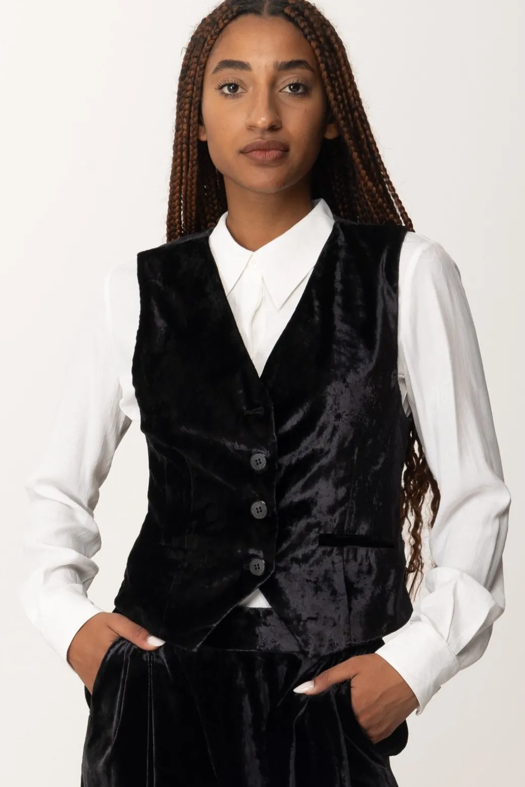 Il velluto è uno dei tessuti principe della stagione e arriva a rendere must-have questo gilet Manila Grace. Tessuto lucente e taglio aderente sulla silhouette, perfetto da indossare in combinazione a dolcevita, body e camicie ma anche come top per le più audaci. Vuoi creare un outfit perfetto? Puoi aggiungere il blazer e il pantalone palazzo in velluto per un completo originale e cozy!