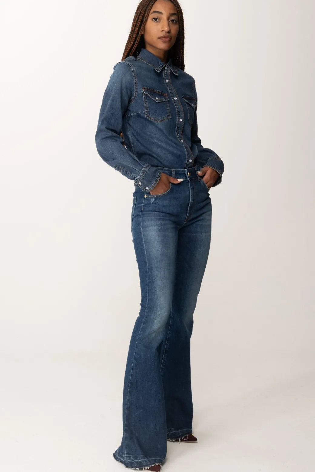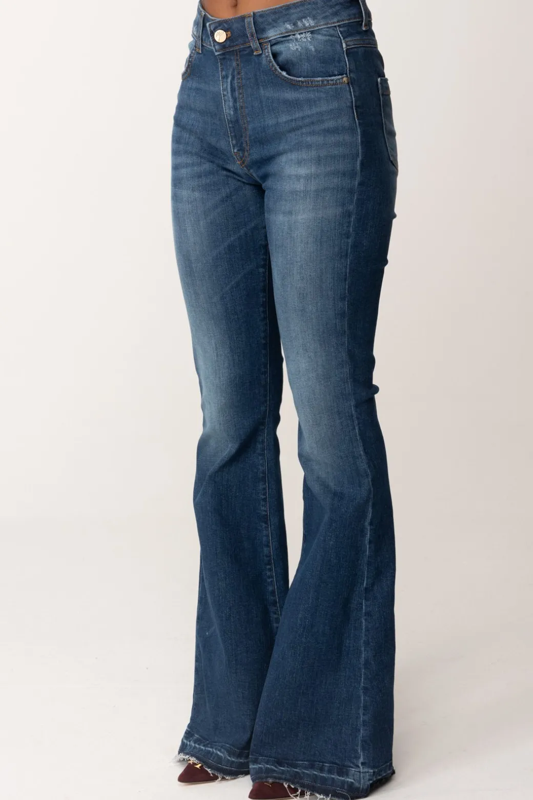 Un jeans Manila Grace cinque tasche, disponibile in due varianti colore ma che desidererai avere entrambe! Vita alta, fit impeccabile e modello a zampa, un capo basic che sarà una risorsa per i tuoi outfit di stagione h24. Etichetta con logo a contrasto sul retro.