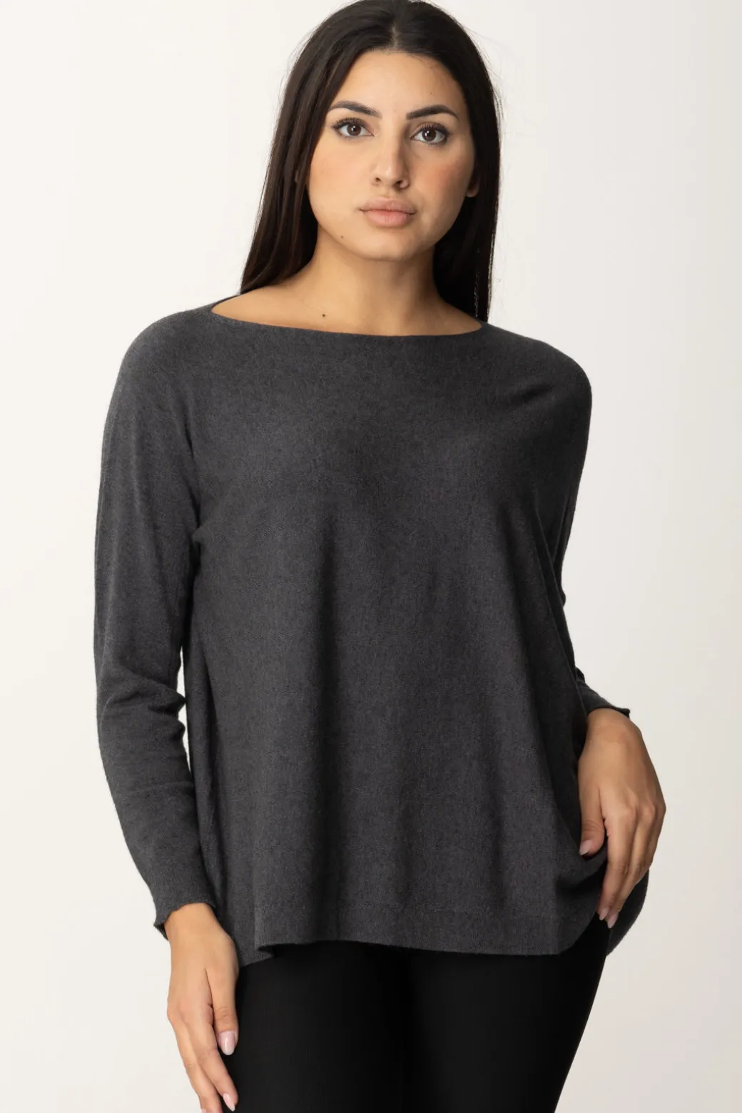 Se ami le vestibilità oversize e i tagli un po’ sopra le righe, allora devi assolutamente provare questa maglia poncho Manila Grace, con fondo asimmetrico e scollo a barca. È realizzata in misto viscosa con orli a costine ed ha una fit super comfort che ti permette di indossarla anche su altre maglie, o di giocare con i volumi dei tuoi outfit di stagione.