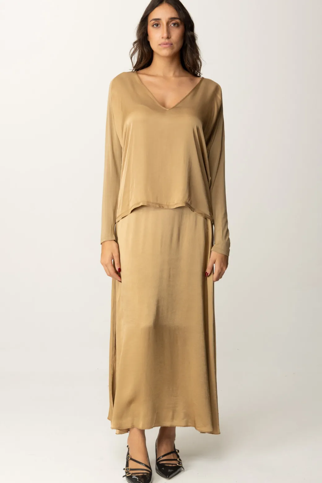 Questa gonna lunga Manila Grace in satin è un vero must per un look elegante ma senza sforzi. La lucentezza del tessuto aggiunge subito un tocco di glamour, perfetto per un evento serale o un aperitivo chic. Abbinala con un top cropped nero e dei sandali con tacco per slanciare la figura. Se vuoi dare un twist più casual, indossala con una t-shirt bianca e sneakers chunky. Una mini borsa a tracolla completerà il look, super trendy!