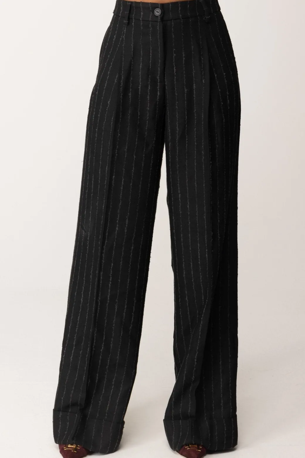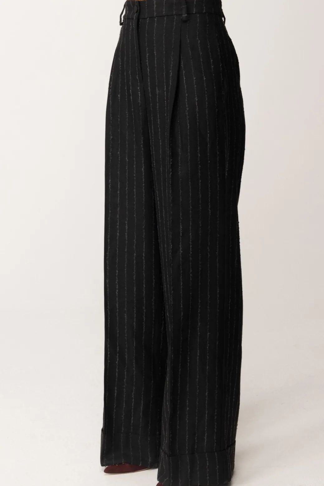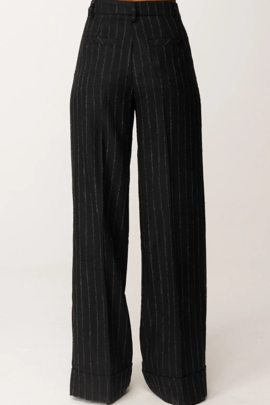 Ispirazione al maschile, risultato al femminile: dei bei pantaloni Manila Grace con gamba larga e pattern a righe, risvolti a fondo gamba e pinces sul fronte, da coordinare al gilet con le stesse caratteristiche o abbinare a tantissime maglie e top della collezione per outfit sempre diversi. Camicia per l’ufficio e crop top per la sera? E perchè no!