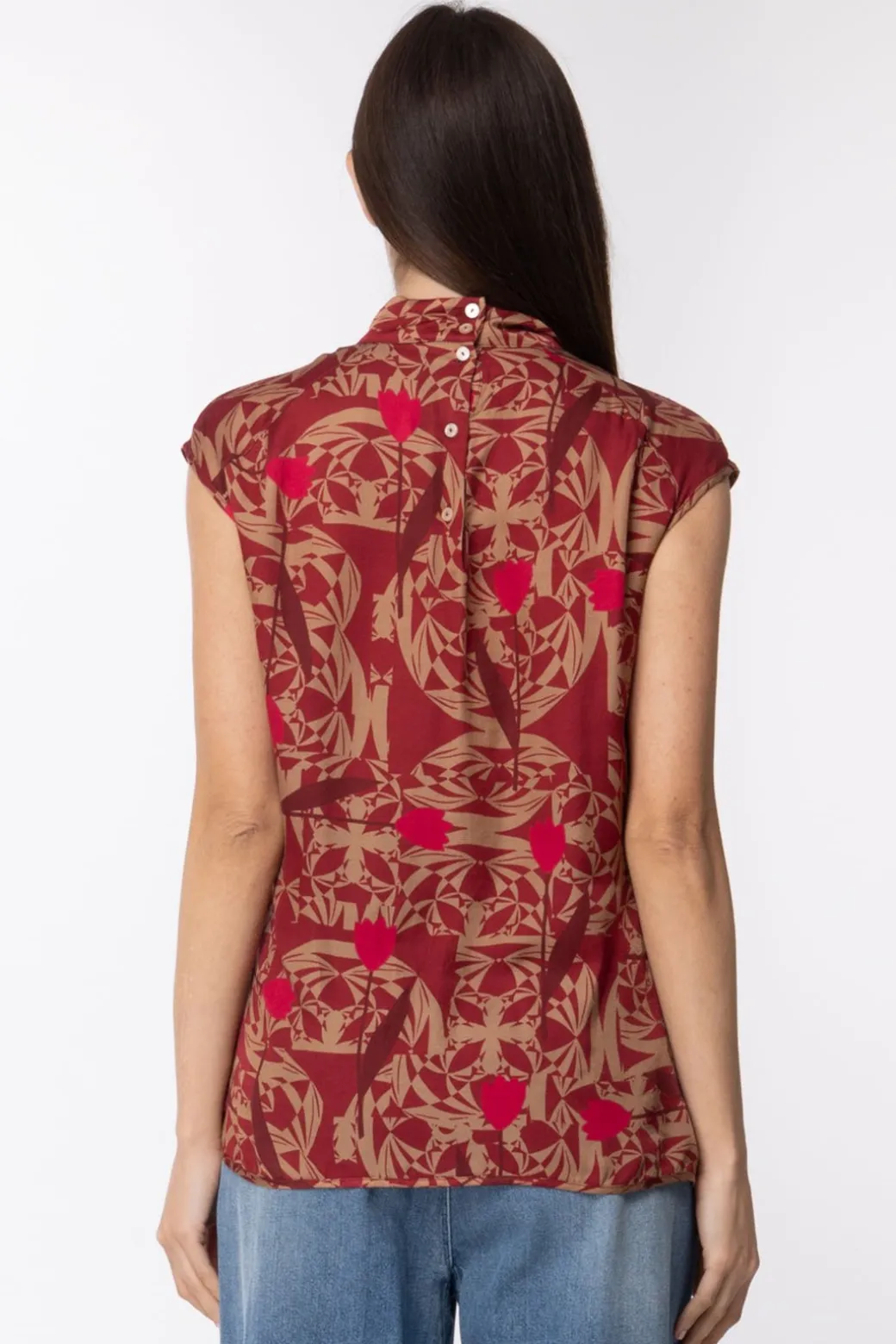 Top Manila Grace realizzato in misto seta, morbido al tatto, dalla linea scivolata, arricchito da una delicata stampa astratta, che lo rende perfetto per i tuoi outfit casual chic.