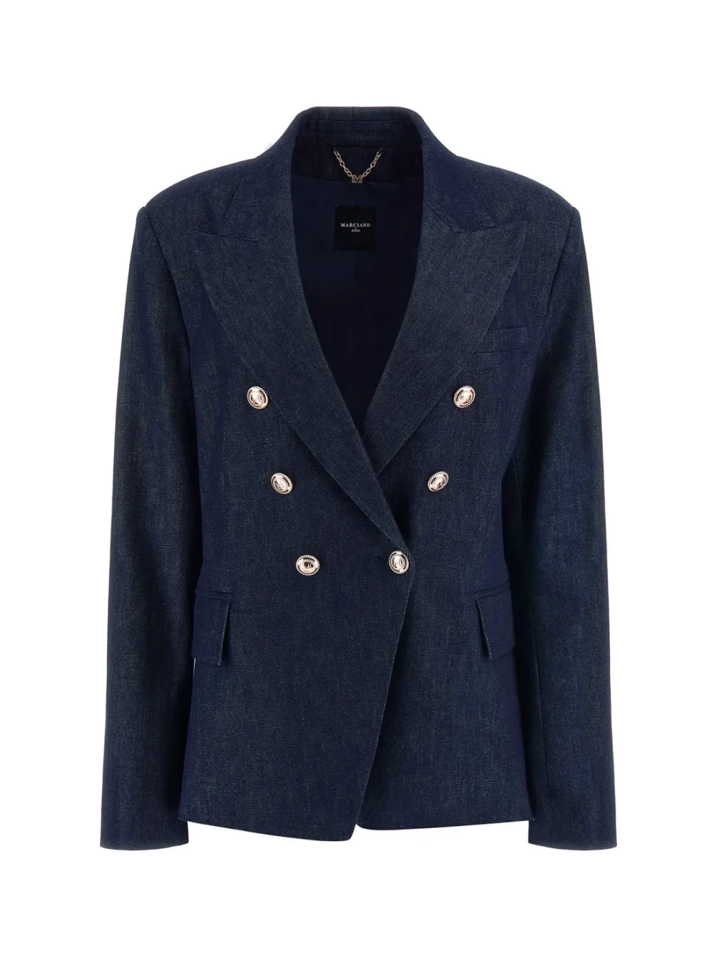 Il blazer Marciano Guess dal modello doppiopetto in denim, è un capo che combina struttura sartoriale e stile moderno. I bottoni luminosi donano un tocco luxury che illumina perfettamente il lavaggio scuro del tessuto in jeans, mentre il design versatile lo rende ideale sopra pantaloni slim o gonne midi. Aggiungi accessori statement per un look sofisticato