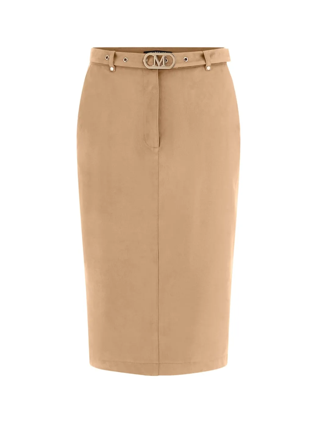 Questa gonna Marciano Guess dal taglio midi, è realizzata in tessuto scamosciato ed è arricchita da una cintura statement con un dettaglio logo al centro che aggiunge un tocco glamour. Perfetta per creare silhouette eleganti, si abbina a camicie leggere o bluse morbide per un look sofisticato da ufficio.