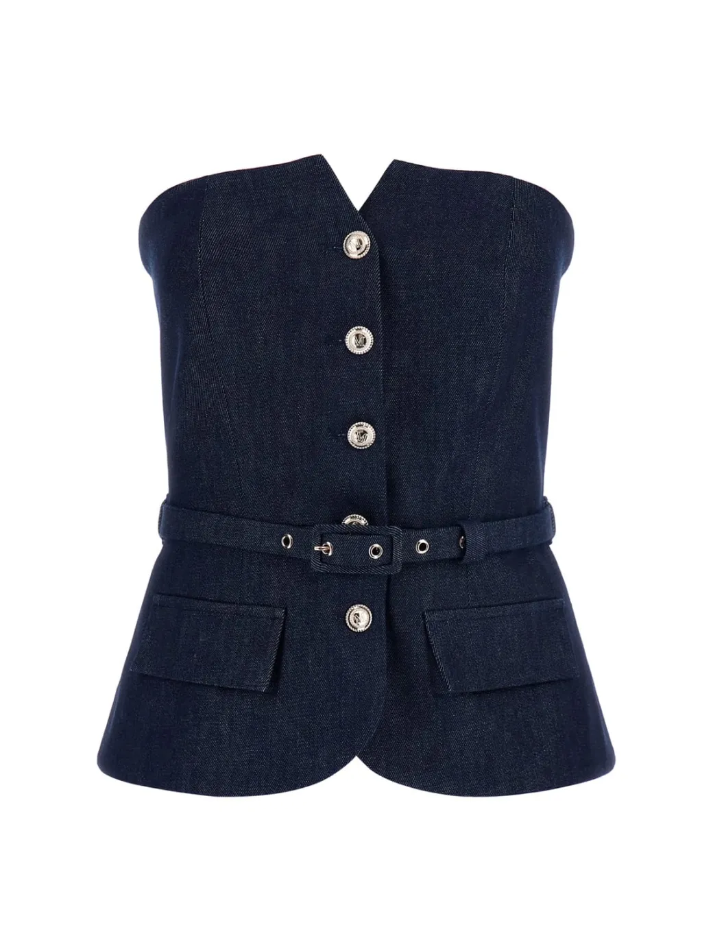 Questo top Marciano Guess in denim presenta un lavaggio scuro e una vestibilità aderente che esalta la silhouette. I dettagli sartoriali, una chiusura a bottoni e una cintura in tono che enfatizzano la struttura, lo rendono perfetto per un look audace da abbinare con i jeans o gonna in coordinato o con pantaloni chic.