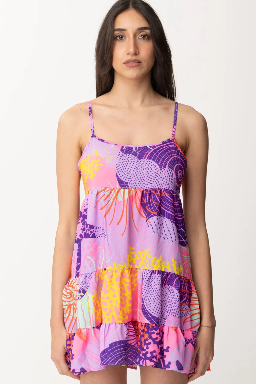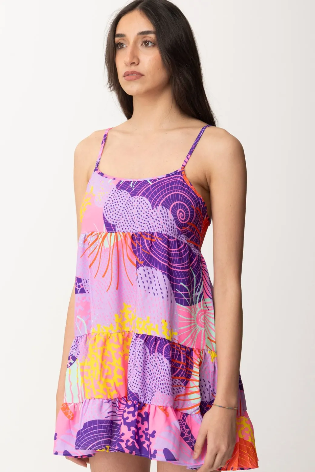 L’accoppiata perfetta per il tuo bikini o un outfit estivo da sfoggiare in spiaggia o passeggiando lungo le vie della città sul mare: il vestito Mefui dal taglio corto e ampio, è caratterizzato da una stampa seashell multicolor, schiena scoperta e gonna a balze, sarà il perfetto compagno fresca e leggera da abbinare al tuo costume o da sfoggiare da solo.