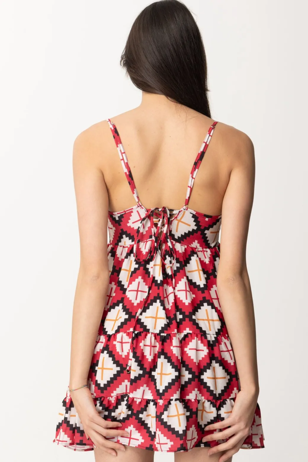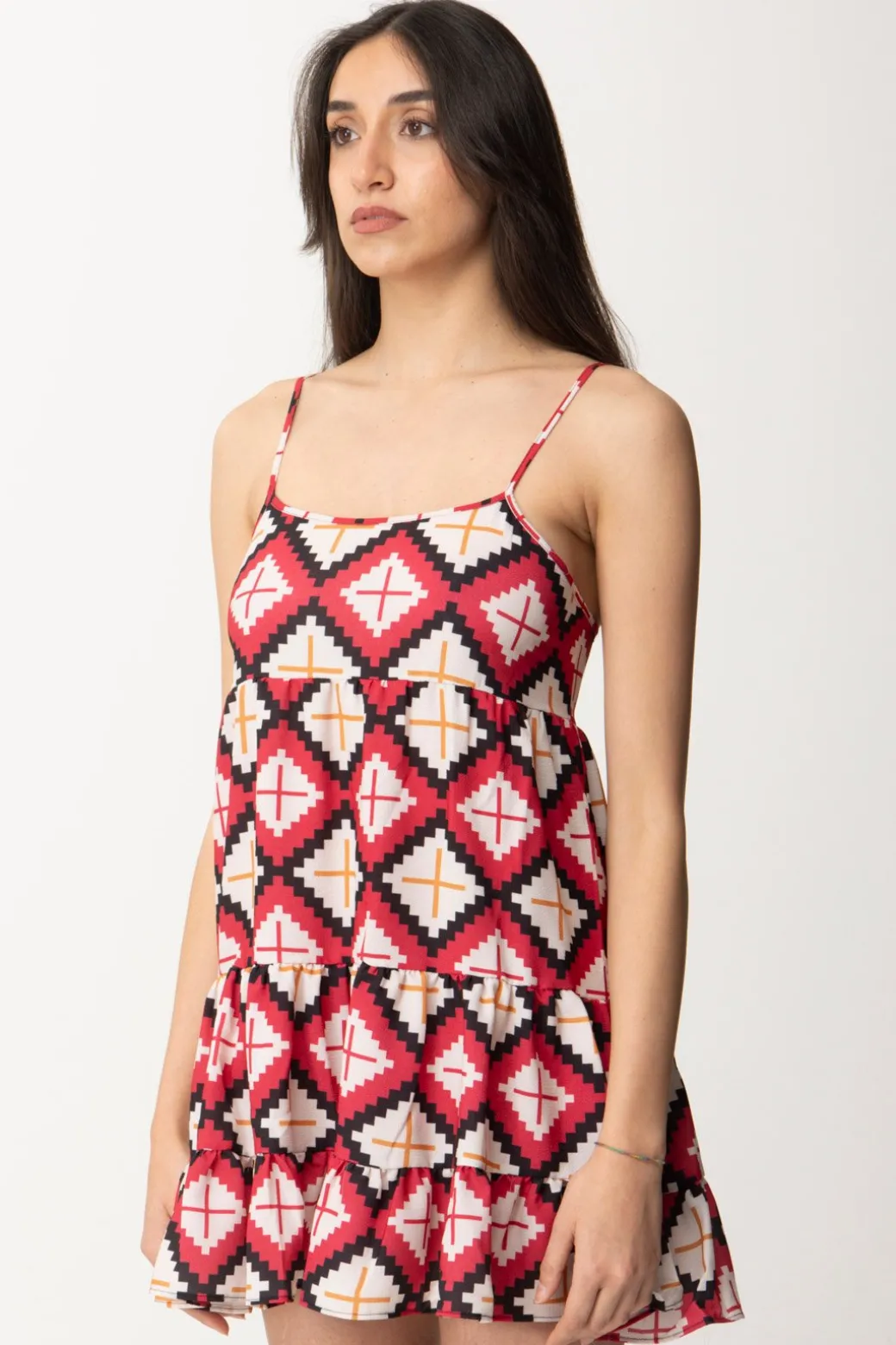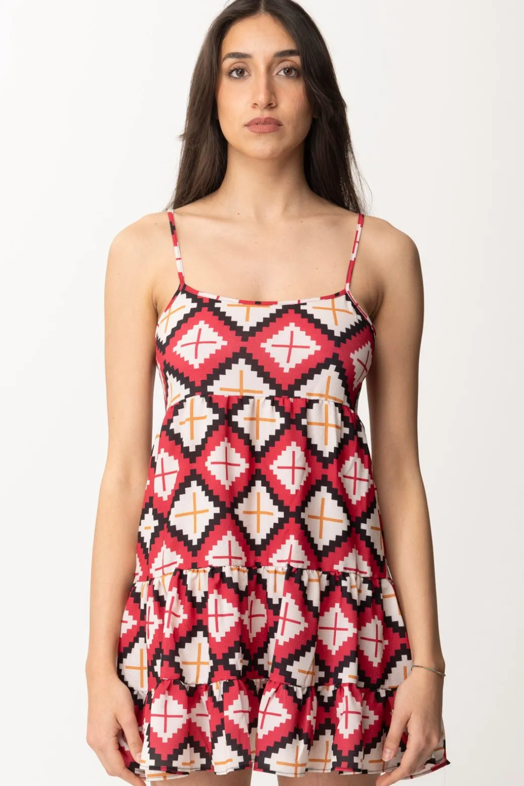 L’accoppiata perfetta per il tuo bikini o un outfit estivo da sfoggiare in spiaggia o passeggiando lungo le vie della città sul mare: il vestito Mefui dal taglio corto e ampio, è realizzato in tessuto cady e caratterizzato da una stampa geometrica multicolor, schiena scoperta e gonna a balze, sarà il perfetto compagno fresca e leggera da abbinare al tuo costume o da sfoggiare da solo.