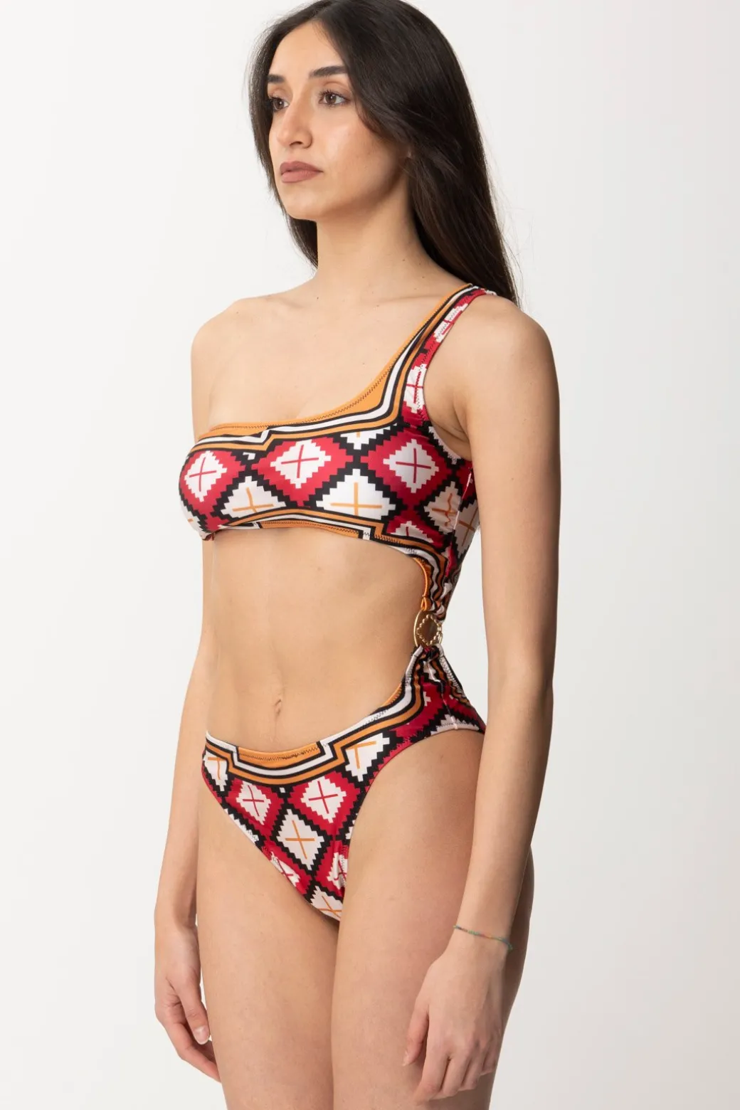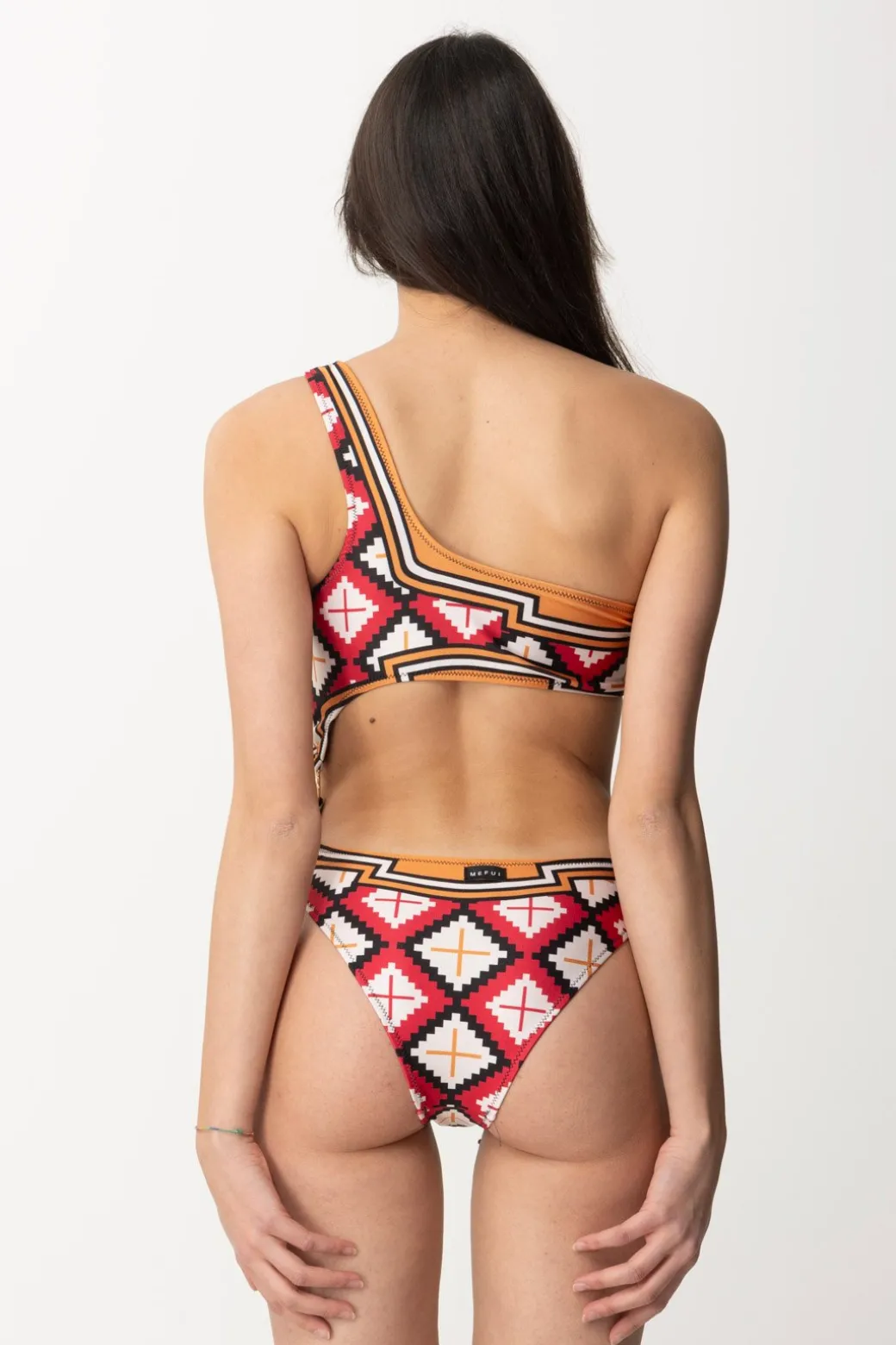 Il costume della tua estate porta un nome, ed è quello del Trikini Mefui: modello monospalla realizzato in lycra lucida con una stampa a fatansia multicolor. Il tocco di stile estivo che ti accompagnerà durante le tue giornate marine!