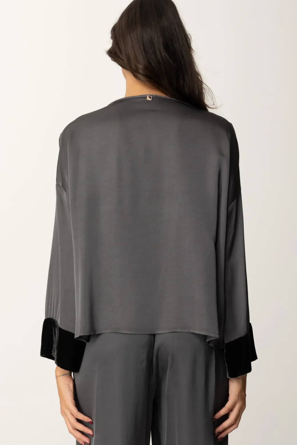 Questa blusa Meme Road dal taglio over è ideale per un look casual ma sofisticato. I dettagli in velluto sui polsini donano un tocco di classe che la rende perfetta per un look da sera, ma puoi anche abbinarla a un paio di jeans mom-fit per un effetto più rilassato.