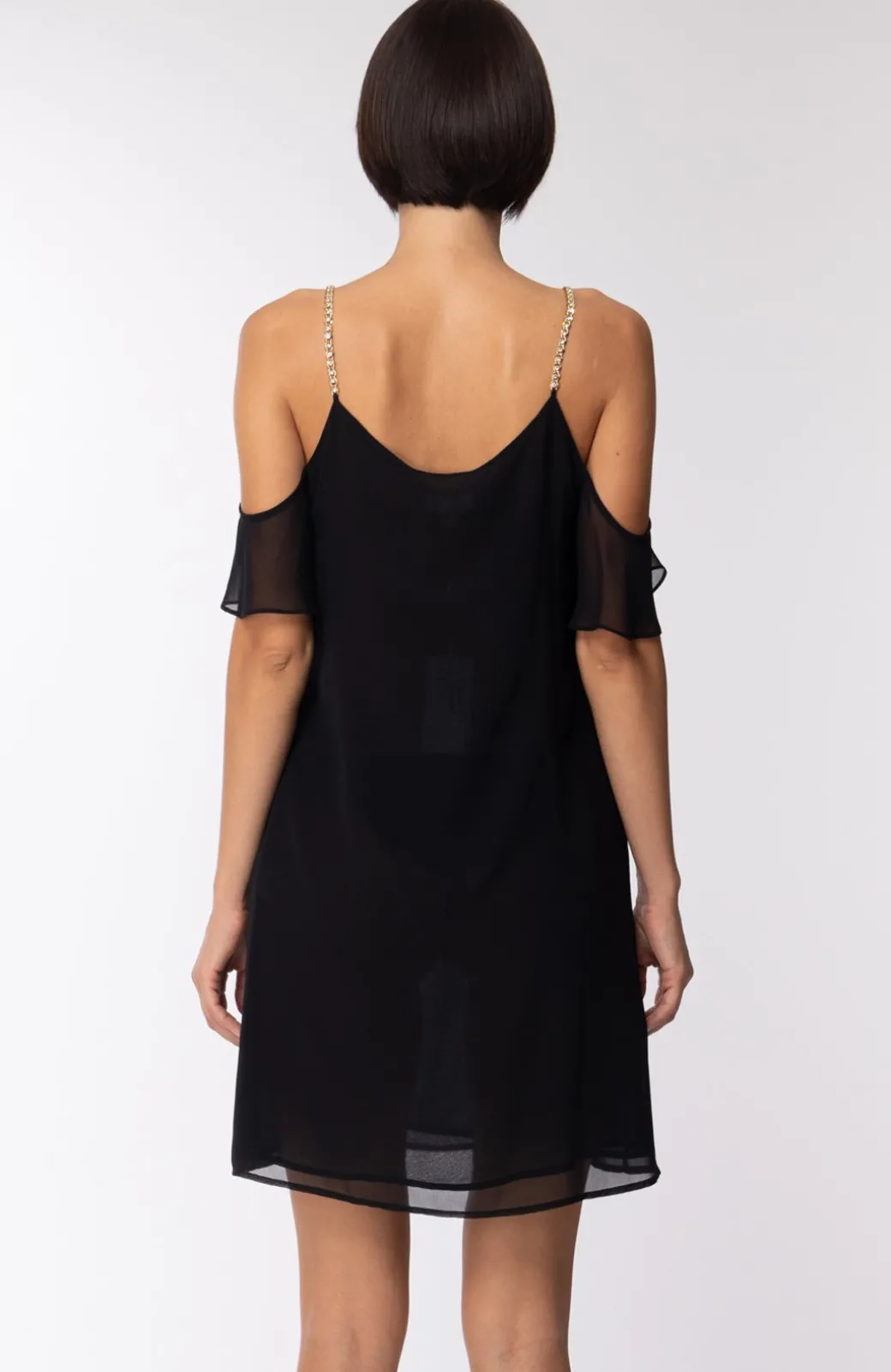 Michael Kors Abito Da Sera Corto con Bretelle StrassNERO