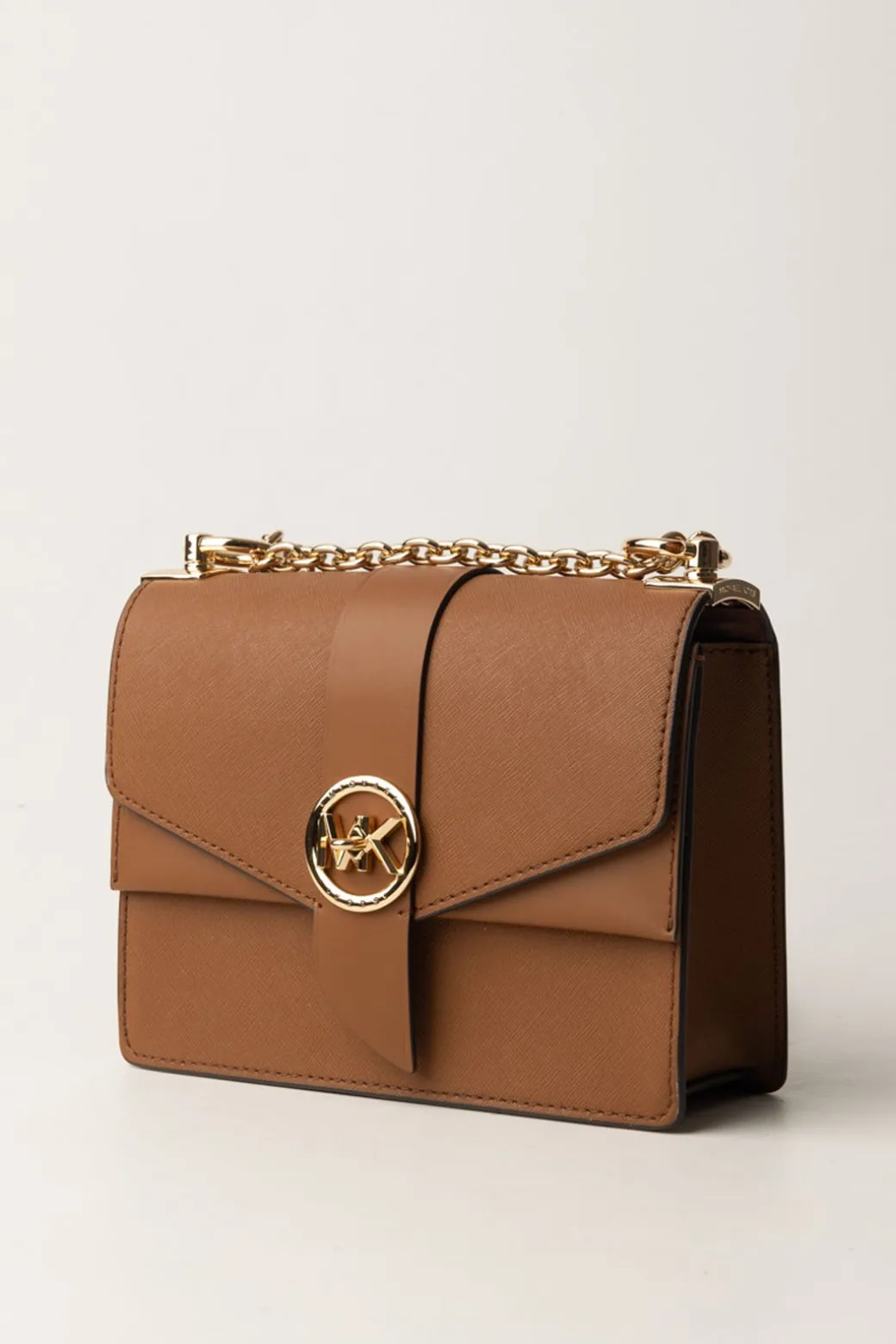 Una borsa Michael Kors dal design moderno e compatto, impreziosita da logo MK gold che la rende un vero gioiello di stile e che richiama la tracolla luminosa. Elegante e glamour, un tocco sofisticato per il tuo outift.