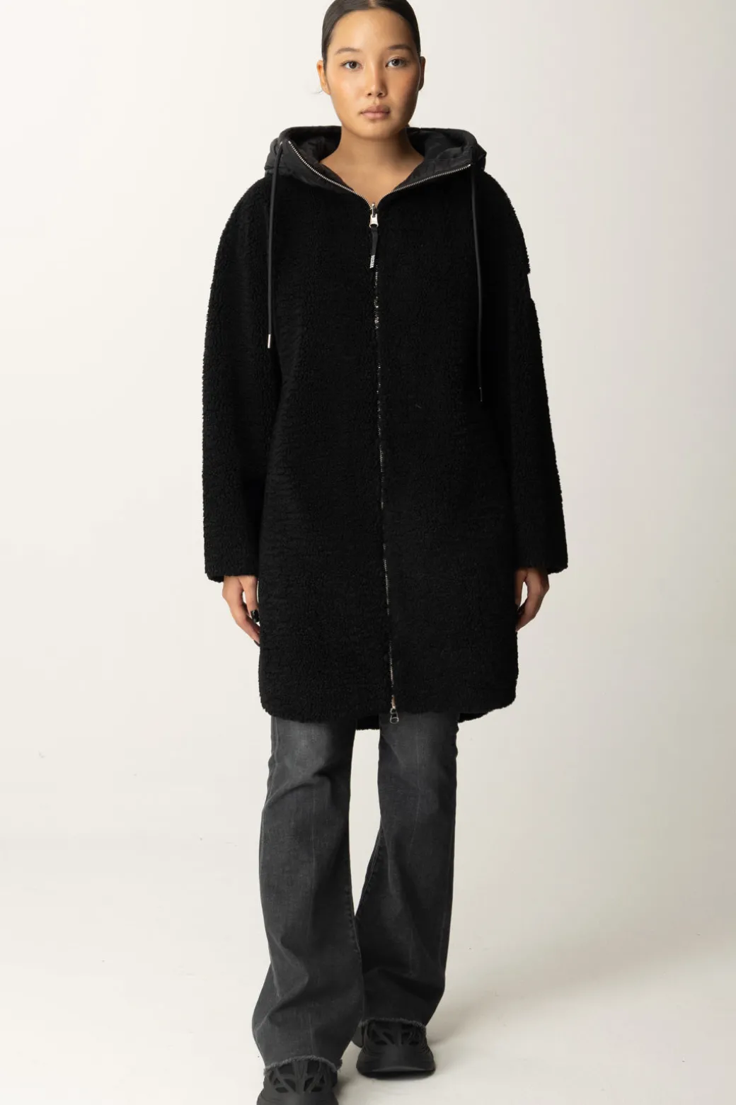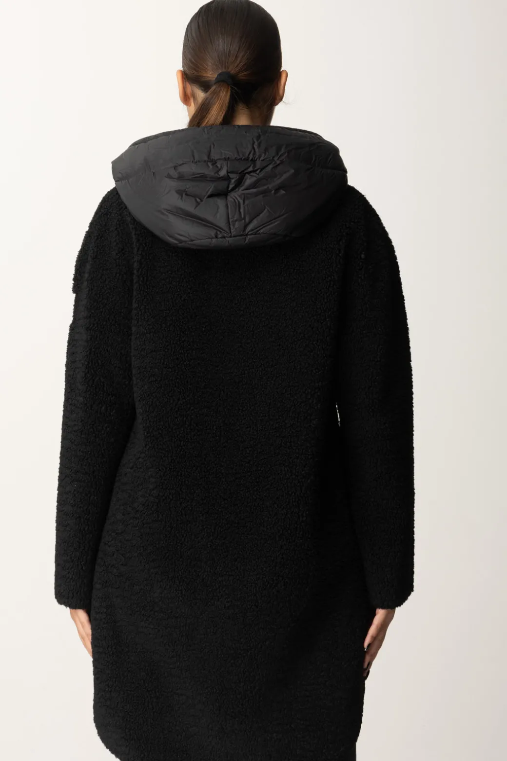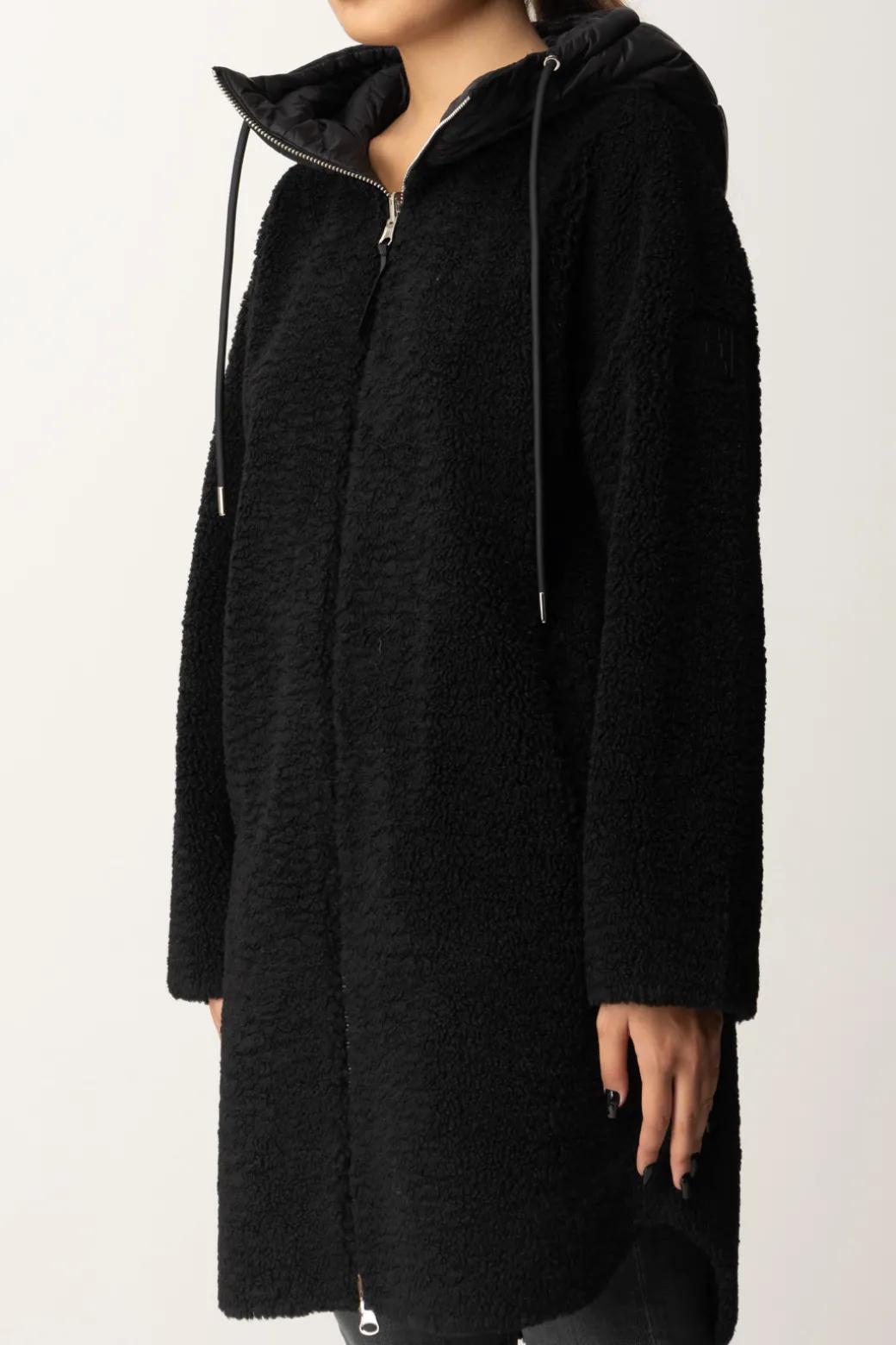 Cappotto Montereggi realizzato in maglia effetto teddy, con cappuccio in tessuto tecnico e zip frontale Amerai indossarlo per tenerti al caldo durante la stagione invernale!