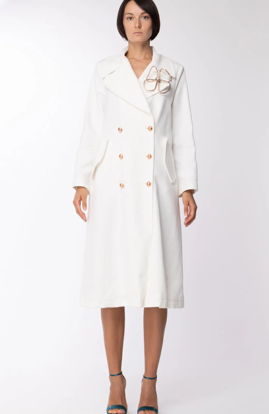 Un ampio colletto e un elegante doppiopetto sono le caratteristiche di questo soprabito Motel, che ti darà un’allure urban chic. Il tocco in più? La spilla in metallo appuntata sul risvolto, in tono con la doppia fila di bottoni sul fronte.