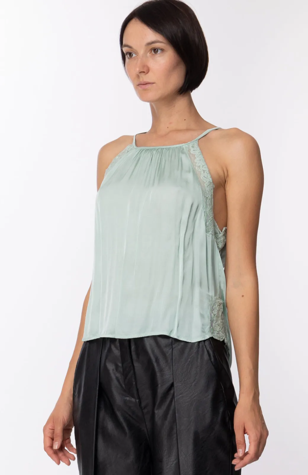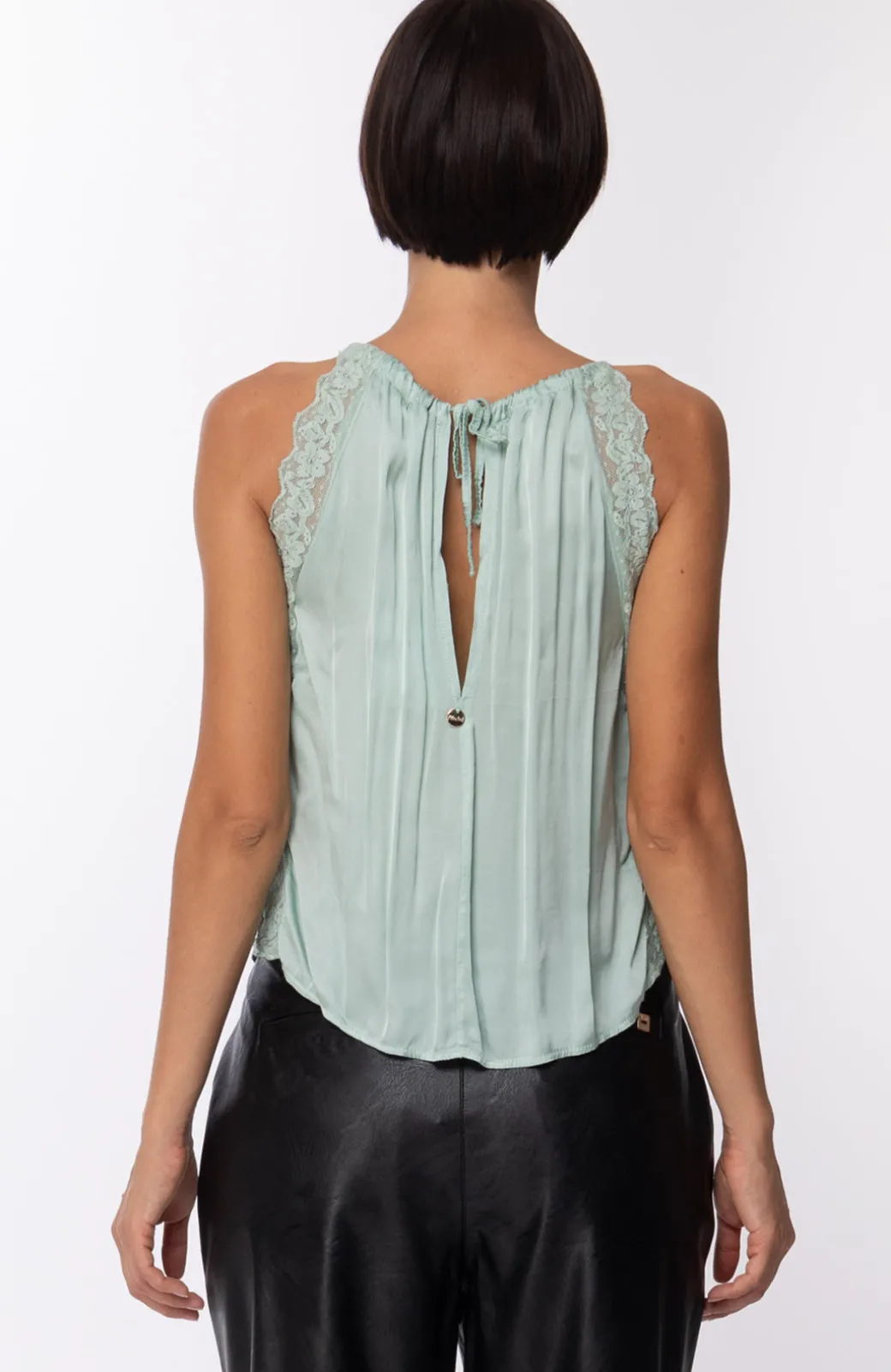 Il pizzo sempre una garanzia, quando compare nei tuoi outfit: quella che riuscirai in ogni caso a mettere un tocco di grazia e sensualità anche nel capo più basic. E così in questo top Motel smanicato e girocollo, con inserti in pizzo tono su tono. Un capo estivo e fresco, da indossare in tantissime occasioni, più o meno casual.