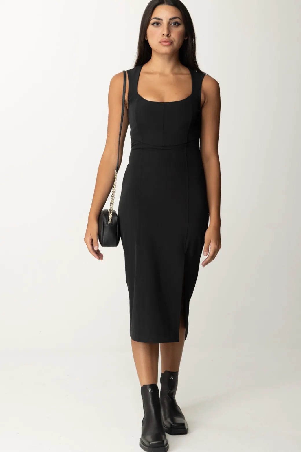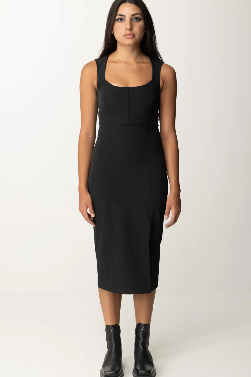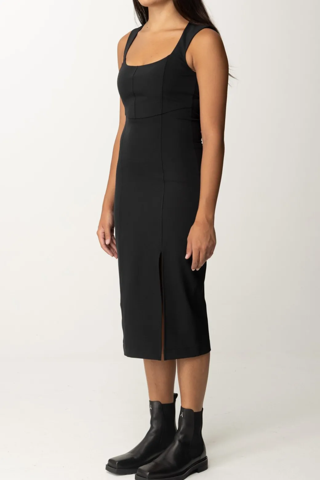 Tubino Patrizia Pepe elegantissimo e femminile, con taglio ben sotto al ginocchio e spacco laterale profondo ma non vertiginoso. Il top è strutturato con cuciture che seguono le tue forme e ampie spalline, che lo rendono particolarmente adatto anche ad occasioni formali. Completalo con una giacca crop o un blazer per sottolinearne l’eleganza e svetta su tacchi alti per aggiungere ulteriore slancio alla silhouette.