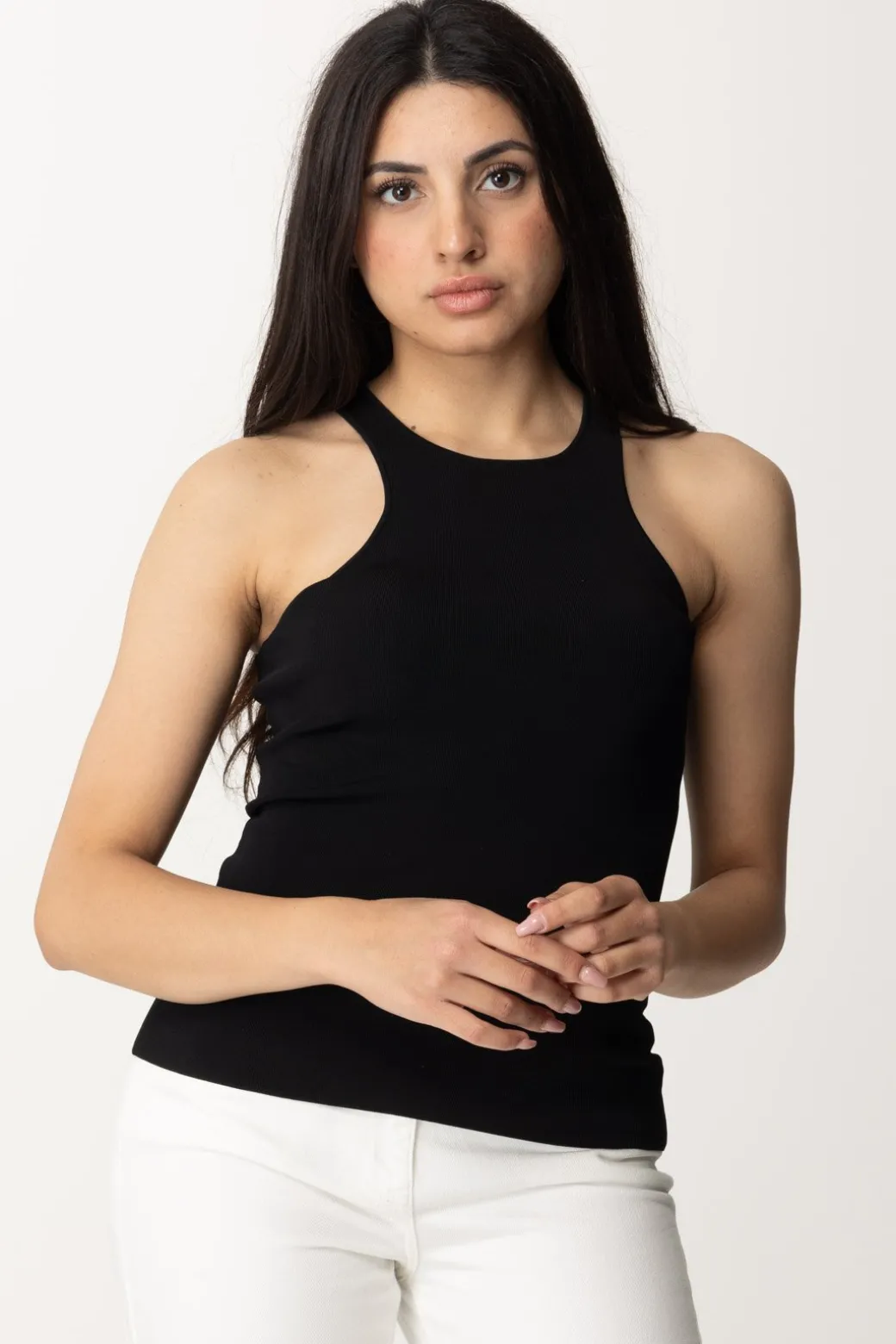 Top in maglia Patrizia Pepe che troverai pratico in quanto super versatile. Basic, con scollo all’americana e fit aderente, indossalo anche sotto un cardigan o una giacca in denim per outfit casual e semplici ma estremamente comfort. Logo lettering sul retro.