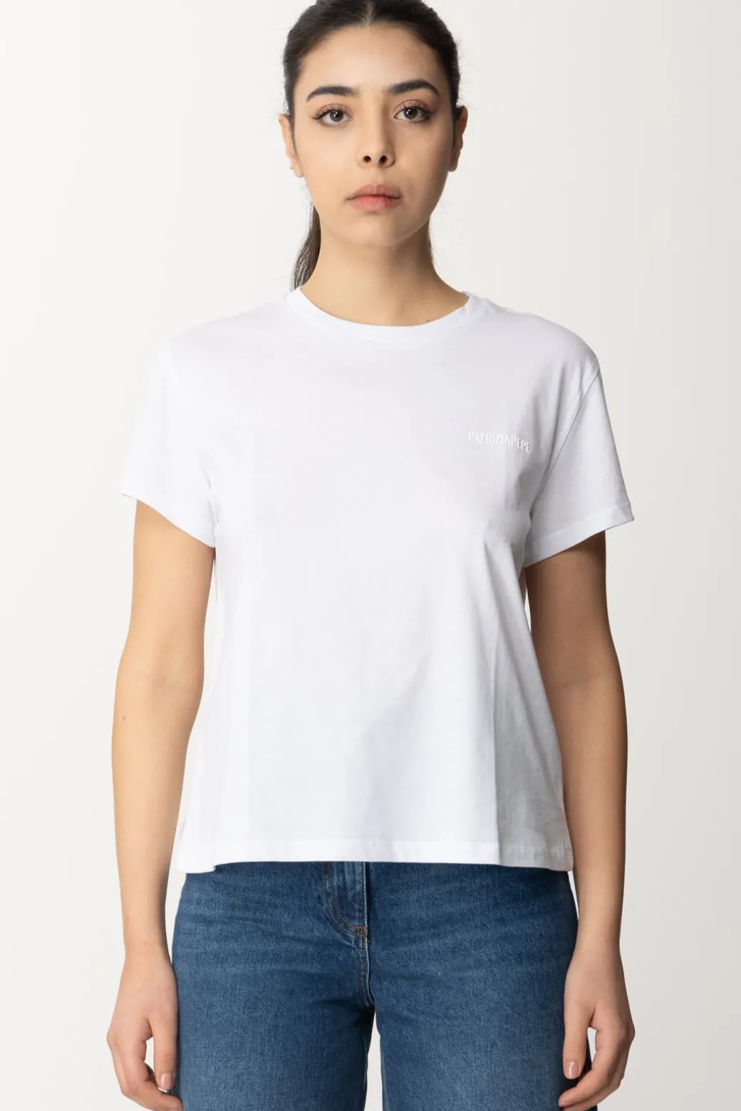 Eleva il tuo look quotidiano con questa t-shirt in cotone dal taglio classico firmata Patrizia Pepe, caratterizzata da un logo mini discretamente posizionato su un lato in tono con la maglia. L’attenzione ai dettagli e la semplicità rendono questa t-shirt un capo versatile e alla moda, perfetto per un look casual ma curato.