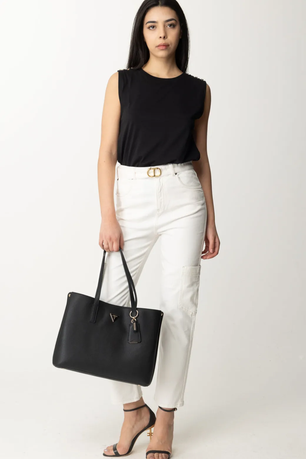 Rompi gli schemi con questa t-shirt smanicata dal carattere unico firmata Patrizia Pepe. I dettagli di piercings gold sulle spalle aggiungono un tocco di grinta e originalità, trasformando questa t-shirt in un capo essenziale per chi ama distinguersi. Indossala per creare un look audace e alla moda che sicuramente attirerà l’attenzione.