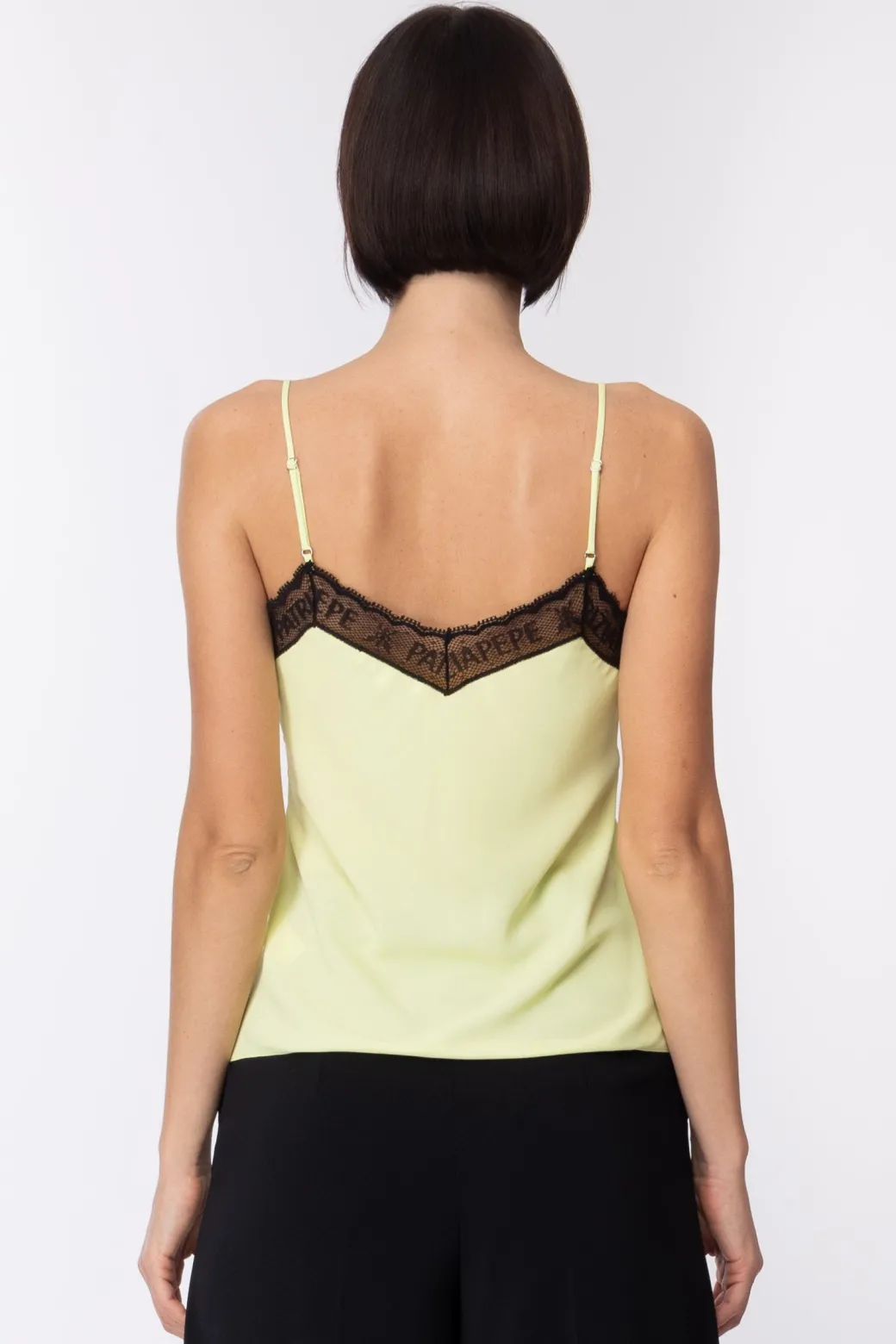 Patrizia Pepe Top In Viscosa con Pizzo LogatoSUNNY LIME