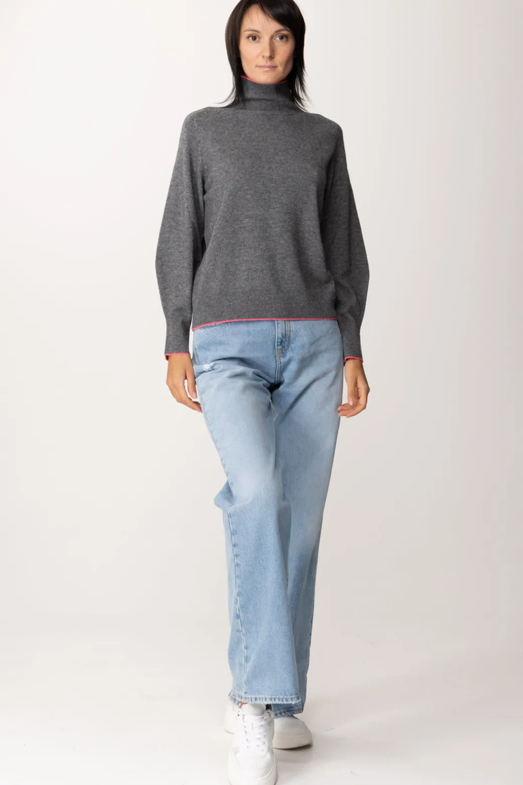 Maglioncino Pinko modello dolcevita dal fit morbido e confortevole, il tessuto in cachemire e lana conferisce uno stile cozy indispensabile per l’inverno, il colletto alto, i polsini e i profili sottili a contrasto di colore donano un tocco originale e trendy.