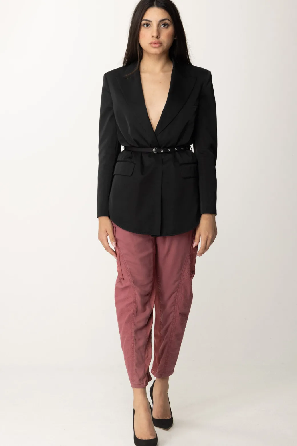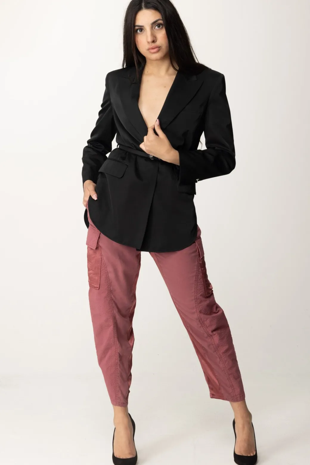 Aggiungi un tocco di eleganza al tuo outfit con questa Giacca Pinko, caratterizzata da un tessuto satinato, collo a rever, imbottitura leggera sulle spalle e tasche con patta sul davanti, completata da una cintura per una silhouette definita e alla moda.