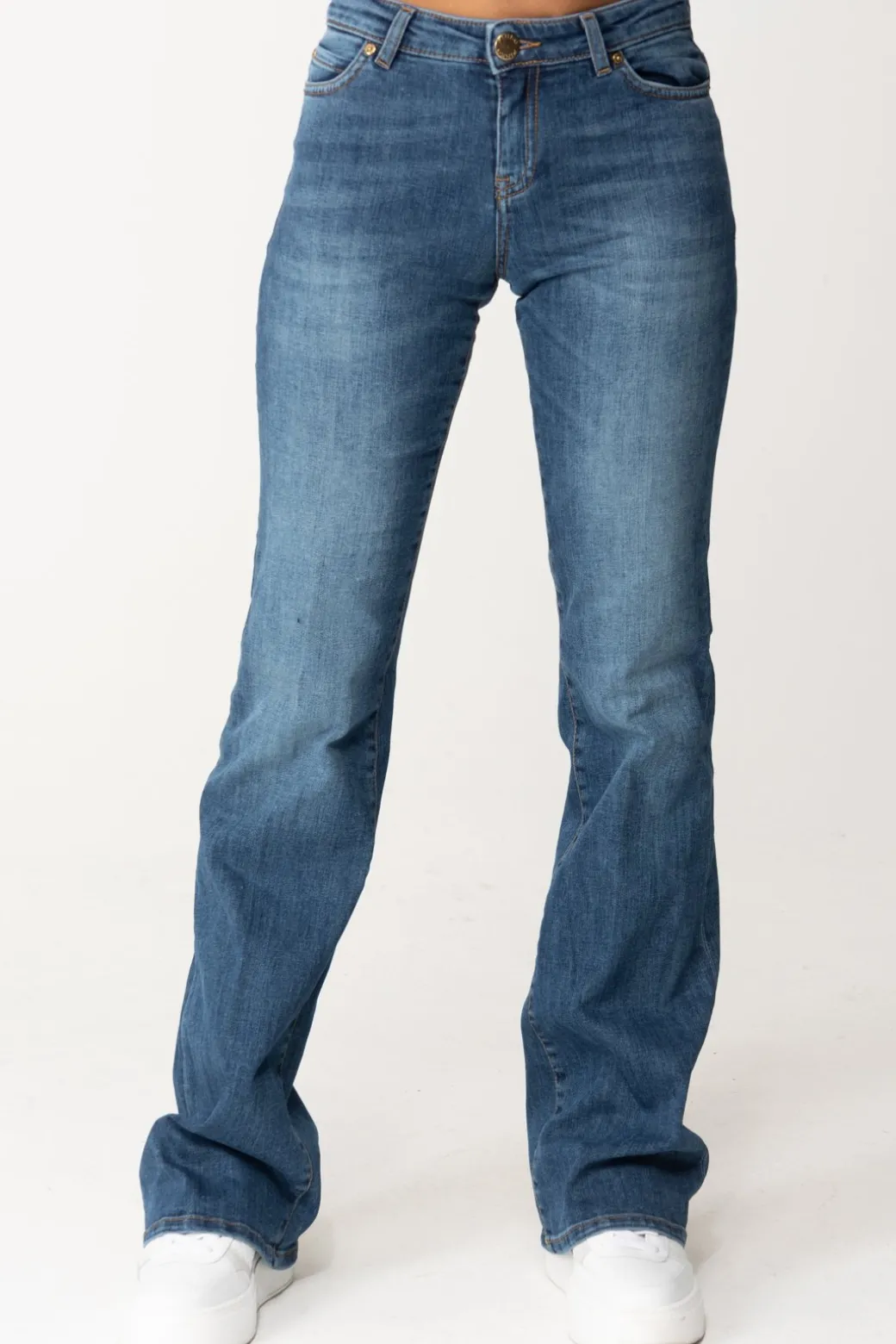 Jeans Pinko dall linea flare-fit a vita bassa realizzati in denim stretch vintage e gamba slim. Saranno i perfetti compagni per outfit da giorno o più casual, il segreto sarà trovare la giusta combinazione di accessori chic!