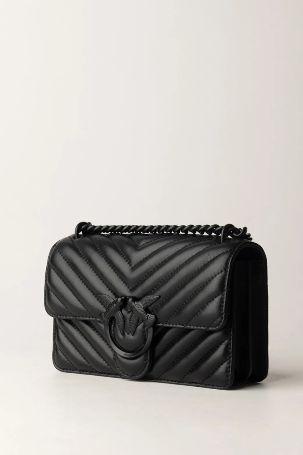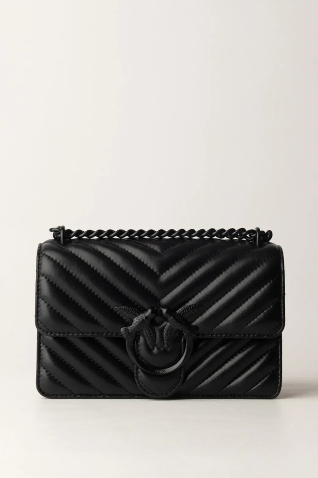 Una borsa Love one Mini Pinko la si riconosce a primo impatto! Design squadrato, chiusura con patta impreziosita da cinghia borchiata e logo Love Birds impreziosito da strass colorati e infine la tracolla a catena con inserto in pelle. Non si ci stanca mai di indossarla!