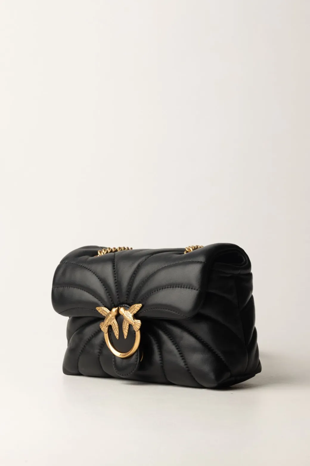 Questa borsa Pinko cattura immediatamente l’attenzione con il suo design accattivante. La pelle imbottita forma un motivo farfalla che parte dal centro, creando un effetto tridimensionale e super chic. Il dettaglio dorato della fibbia Love Birds, simbolo del brand, conferisce un tocco lucente che completa l’allure romantico rendendola ideale per chi cerca un look sofisticato.